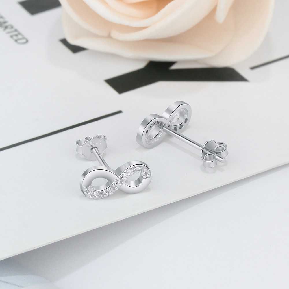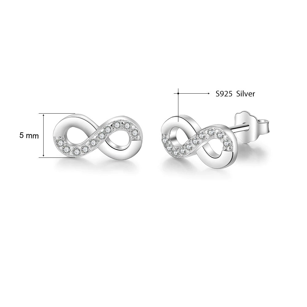 Clous d'oreilles pour femme en plaqué argent avec symbole de l'infini et zircone cubique