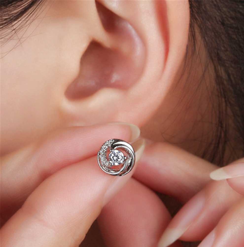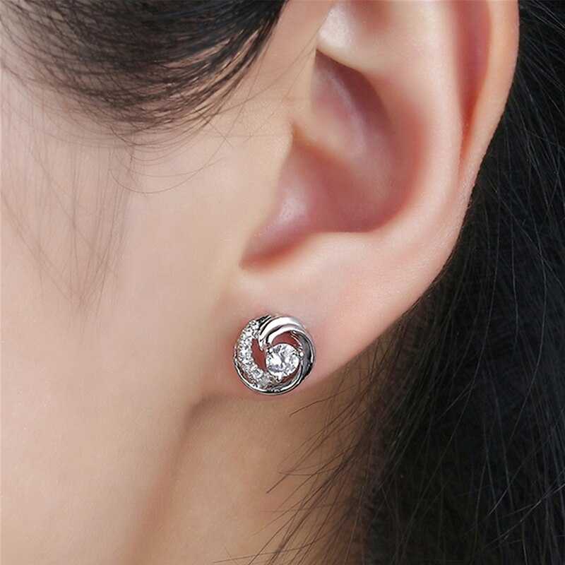 Élégantes et chics, ces boucles d'oreilles scintillantes en forme de tourbillon sont ornées d'un zircon cubique solitaire au centre. De plus petites incrustations de zircone tourbillonnent autour de la pierre centrale qui ressemble à un tourbillon. Ces boucles d'oreilles simples mais élégantes se fixent confortablement grâce à un fermoir à poussoir.