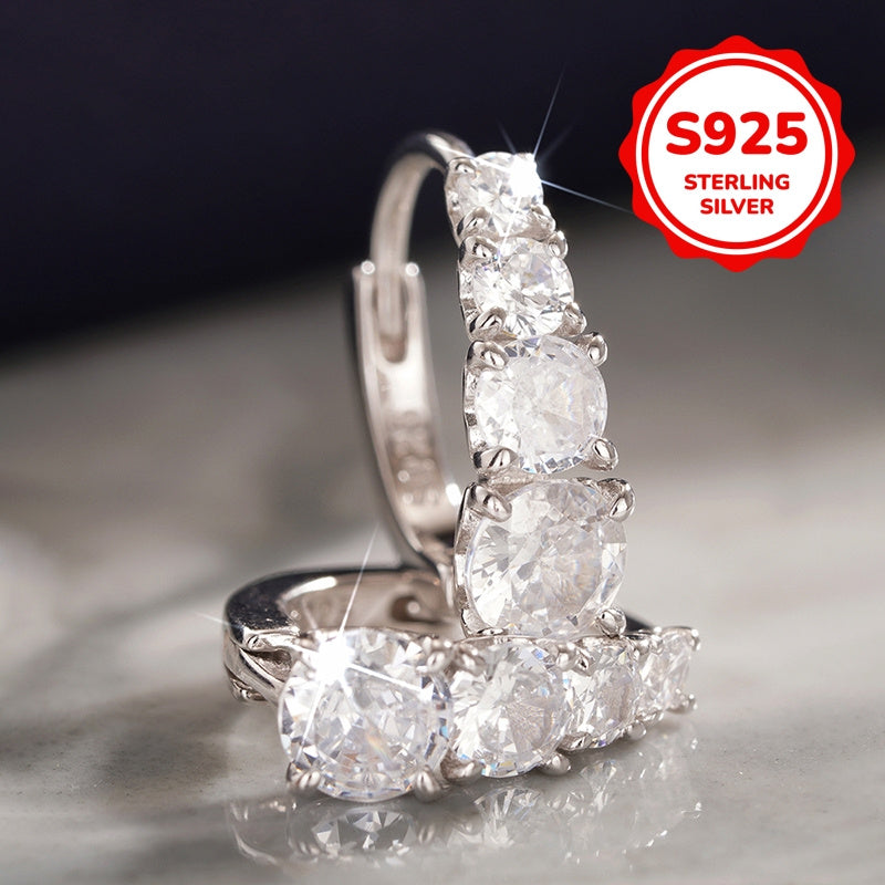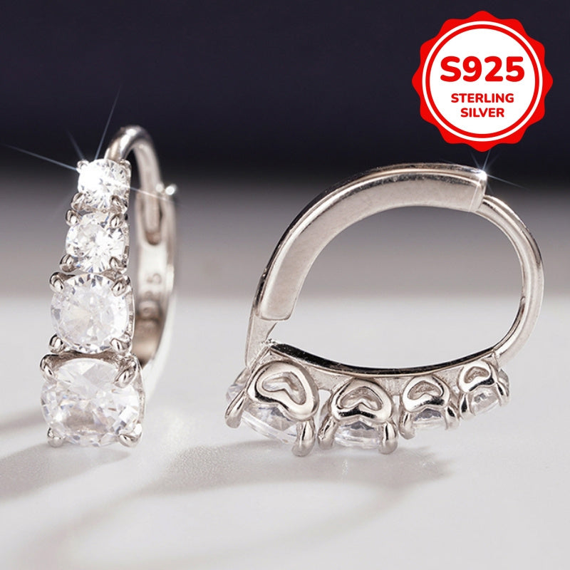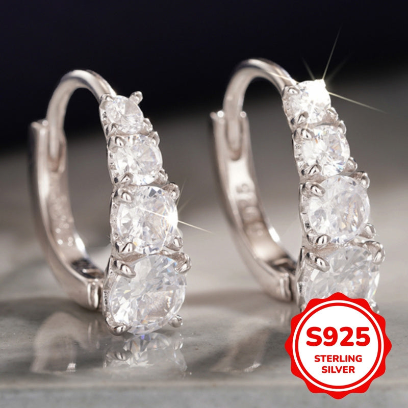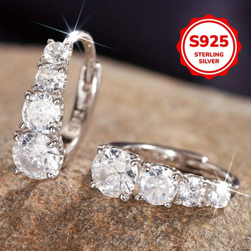 Zirconia Hoop Earrings 925 Silver Casual Holiday Huggies