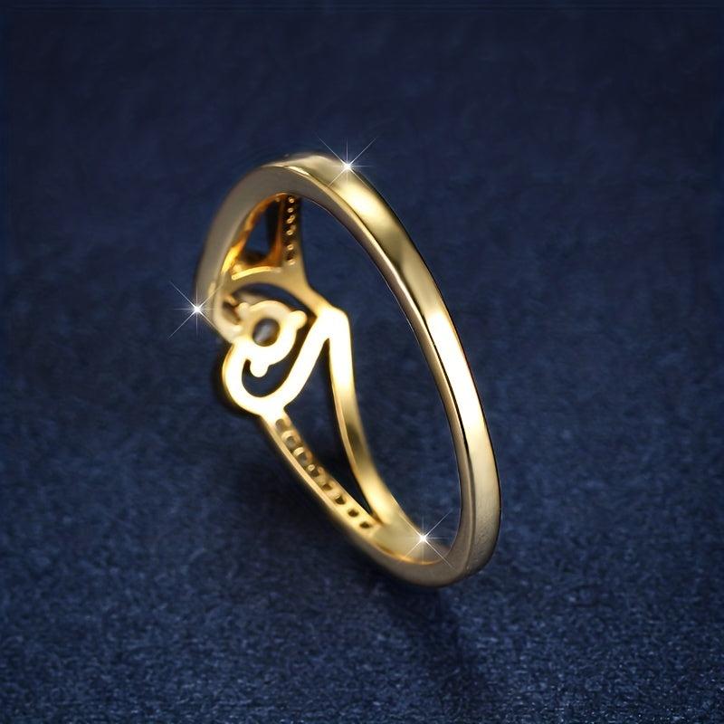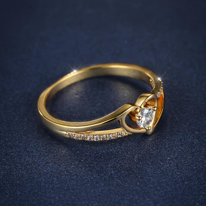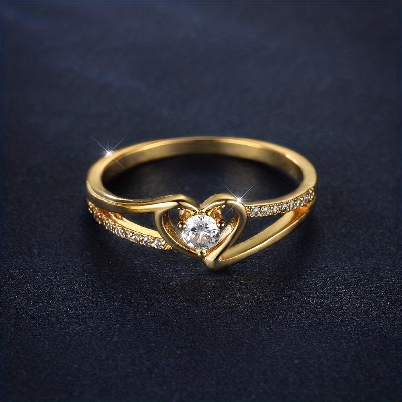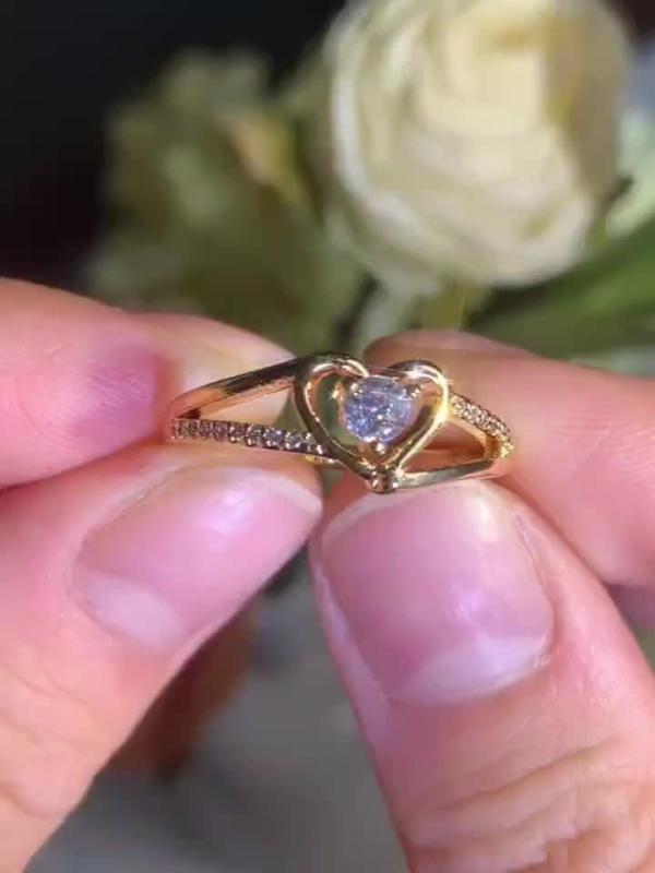 This dainty promise ring features a heart inlaid with sparkling zirconia, perfect for brides. Made with 18k plated metal for an elegant look.