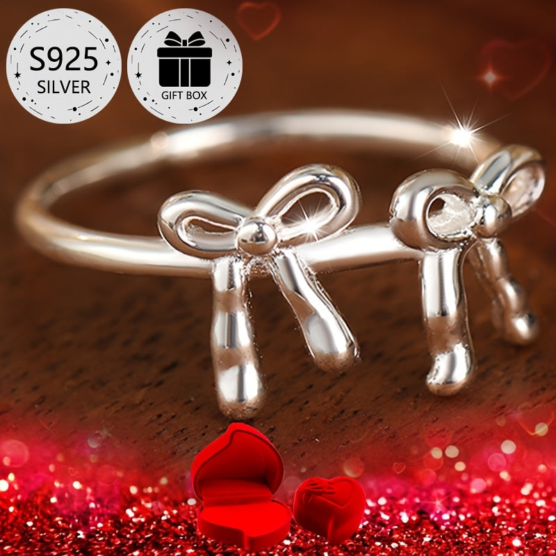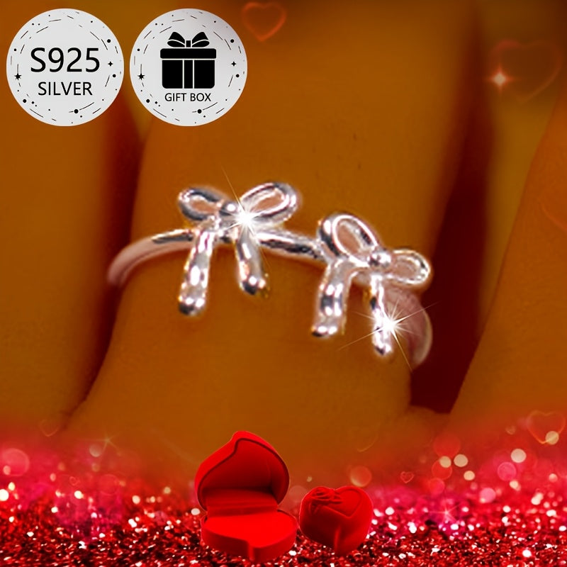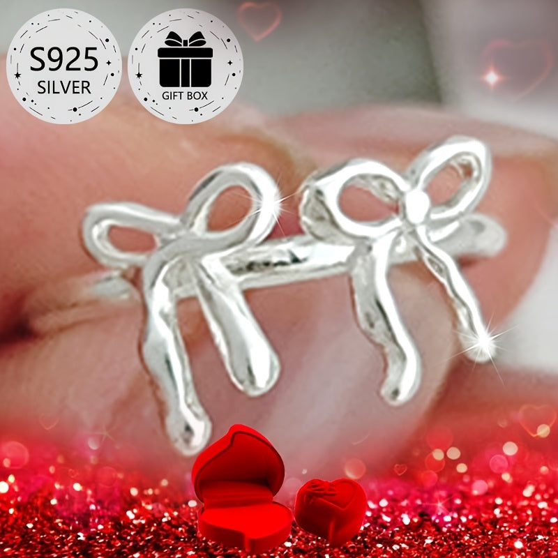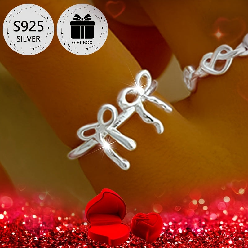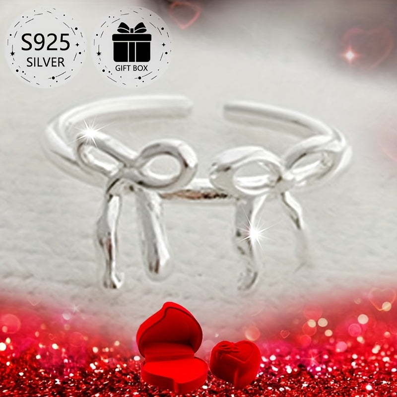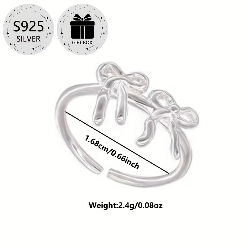 This classic double bow opening ring is made of 925 silver with total weight York 925 silver. It comes with Love Packaging, perfect for a confession gift.