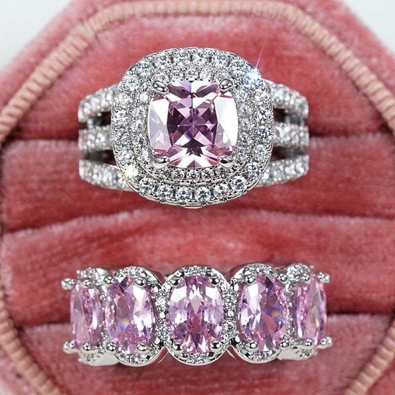 Sparkle in this stylish 4 prong synthetic pink gemstone ring set with shimmering pave-set cubic zirconia. Perfect for parties, weddings, or everyday wear.