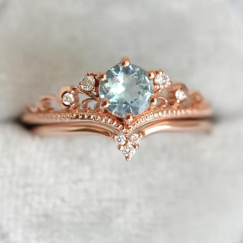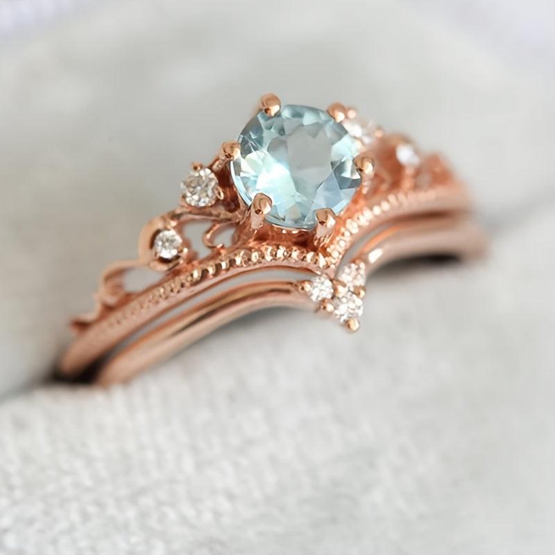 This set includes two engagement rings featuring sea Synthetic Zirconia stones. Perfect for weddings and anniversaries, these rings are a symbol of love and commitment.