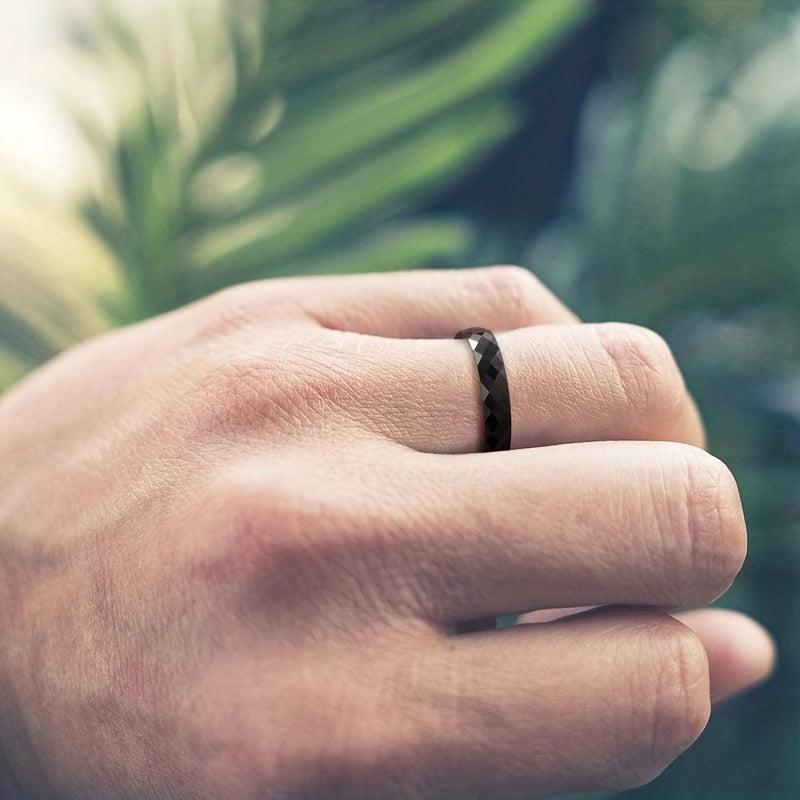 This tungsten ring features a unique rhombus cut design that adds a touch of style to any outfit. Suitable for both men and women, this ring is available in US sizes 4 to 12.