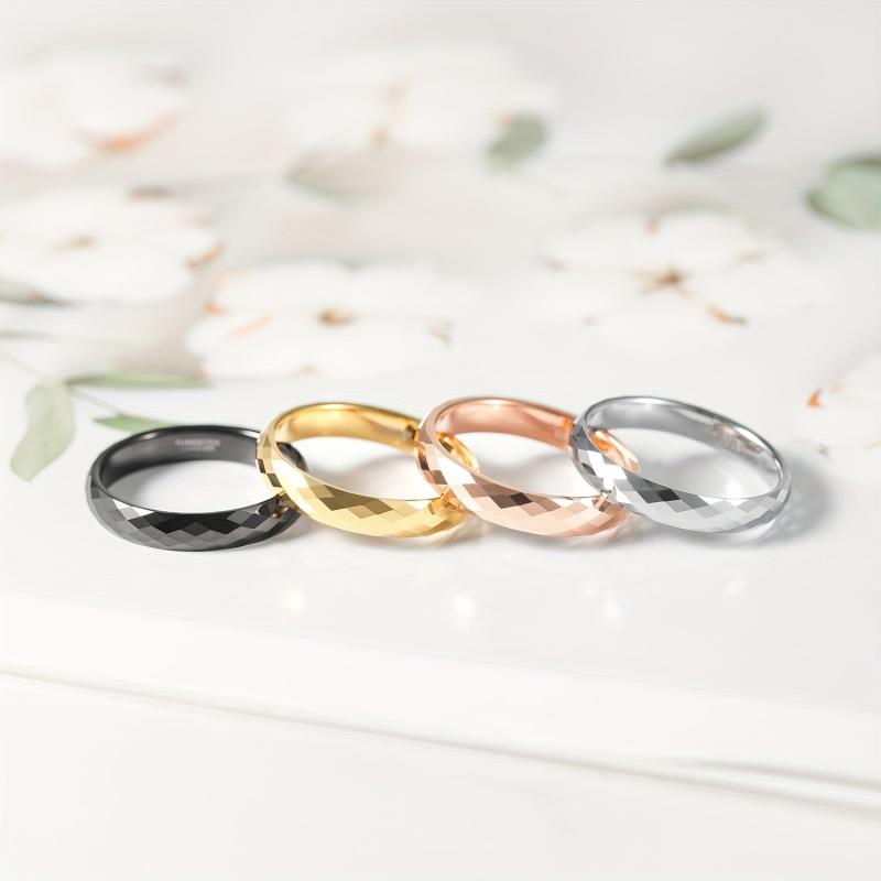 4mm Rhombus Cut Tungsten Ring Unisex Ring Size 4-12