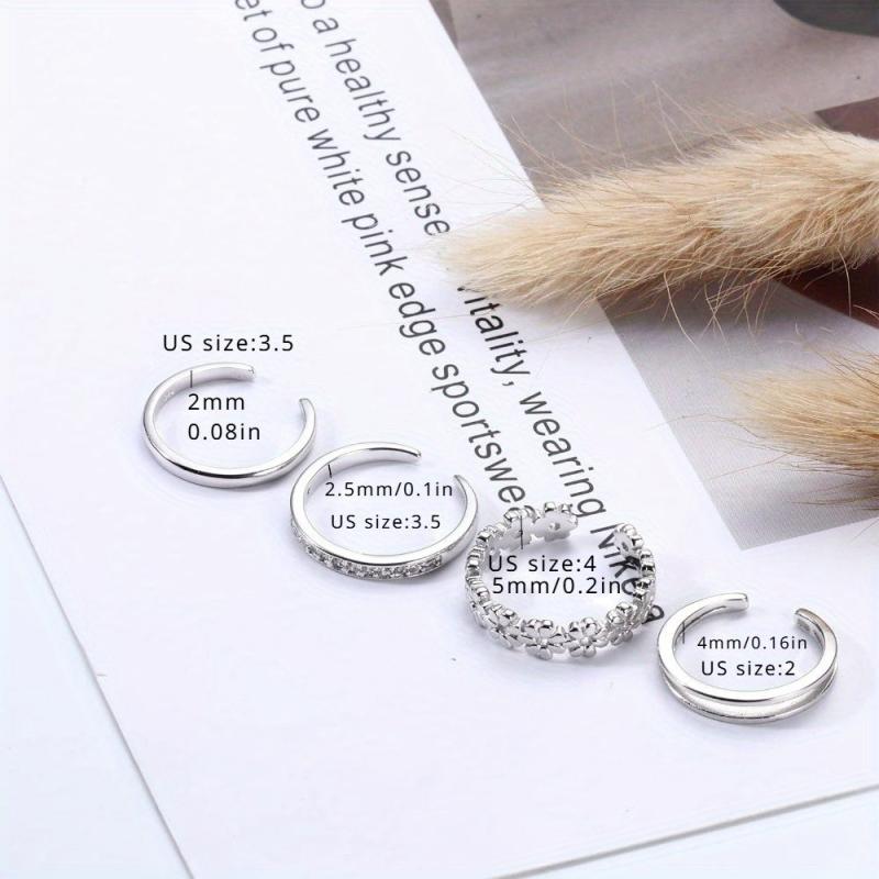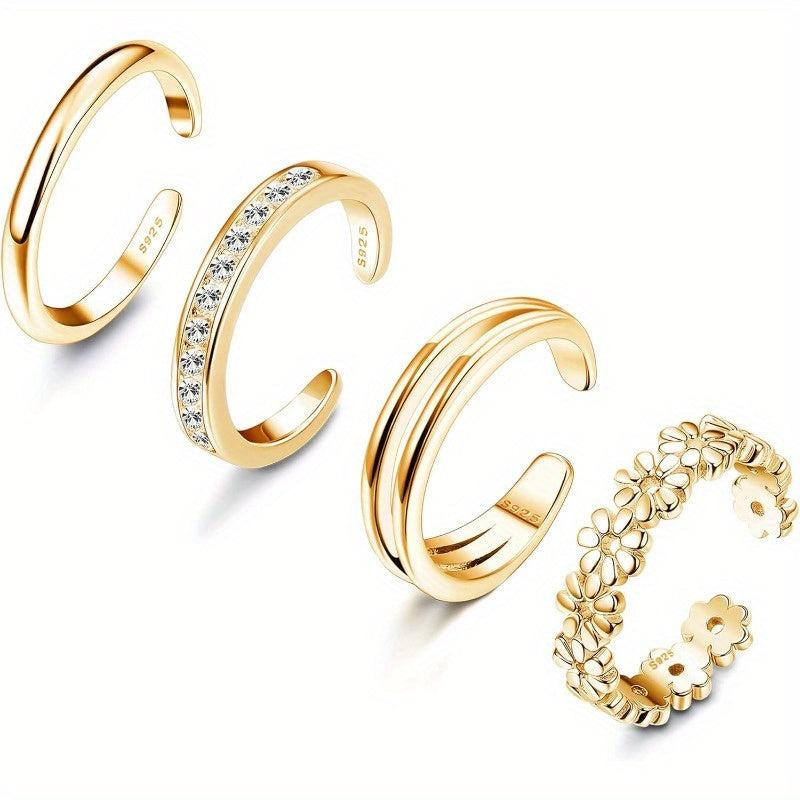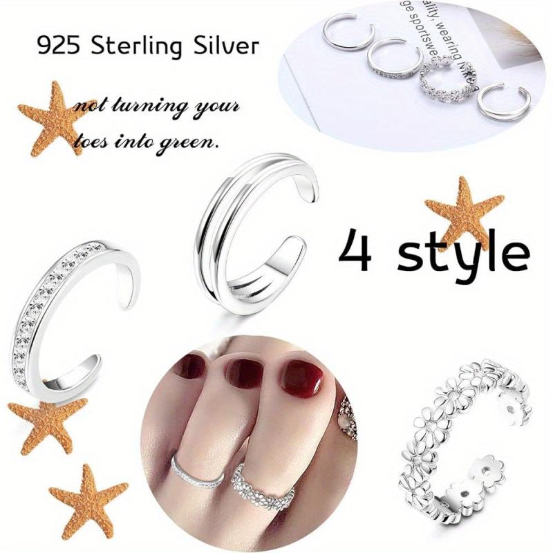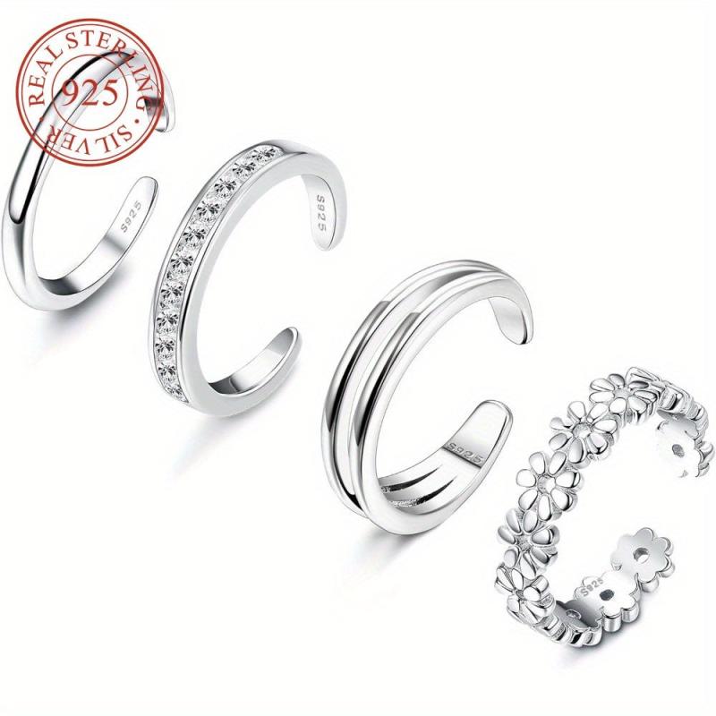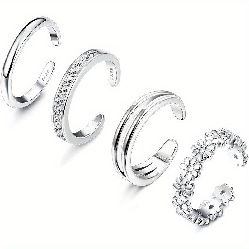 Enhance your summer look with this set of 4 adjustable toe rings featuring daisy flower and CZ designs. Made of lightweight sterling silver.