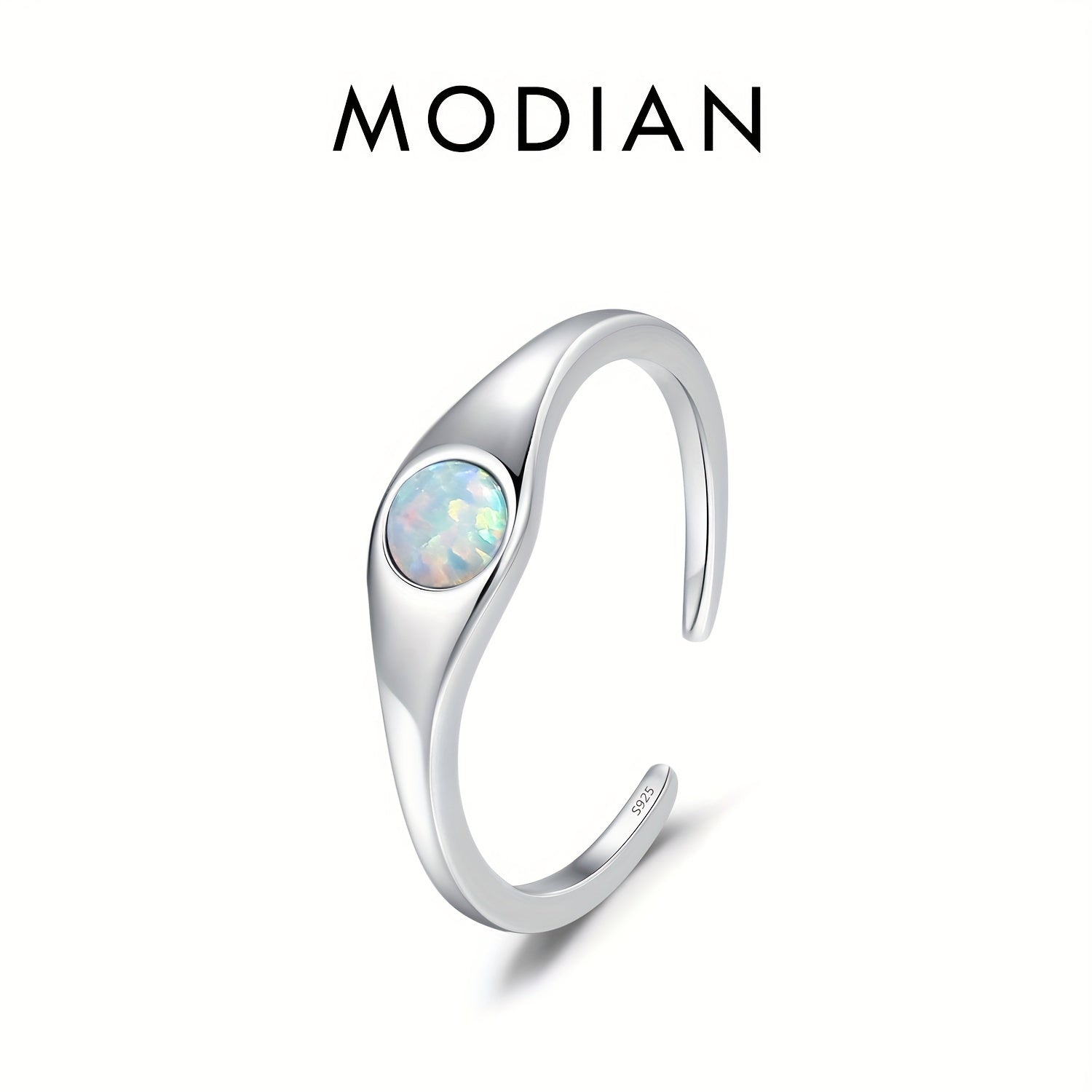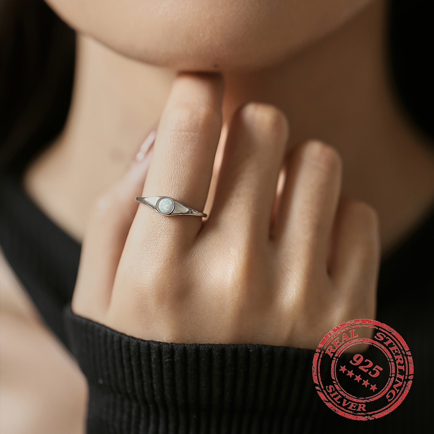 This stunning 925 sterling silver ring features a shining round opal and a smooth opening, making it the perfect accessory for weddings or parties. It is a beautiful and minimalist fine jewelry piece that is ideal as a gift for any occasion.