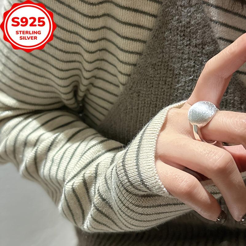 This 925 silver adjustable ring is perfect for women with sensitive skin. It features a frosted finish with polished accents, making it a versatile and stylish accessory.