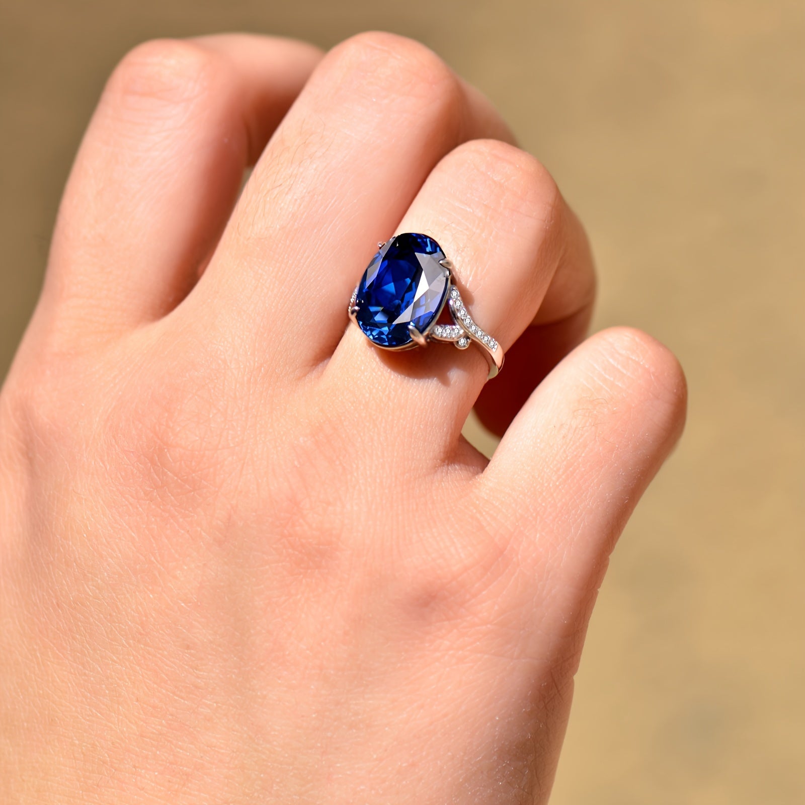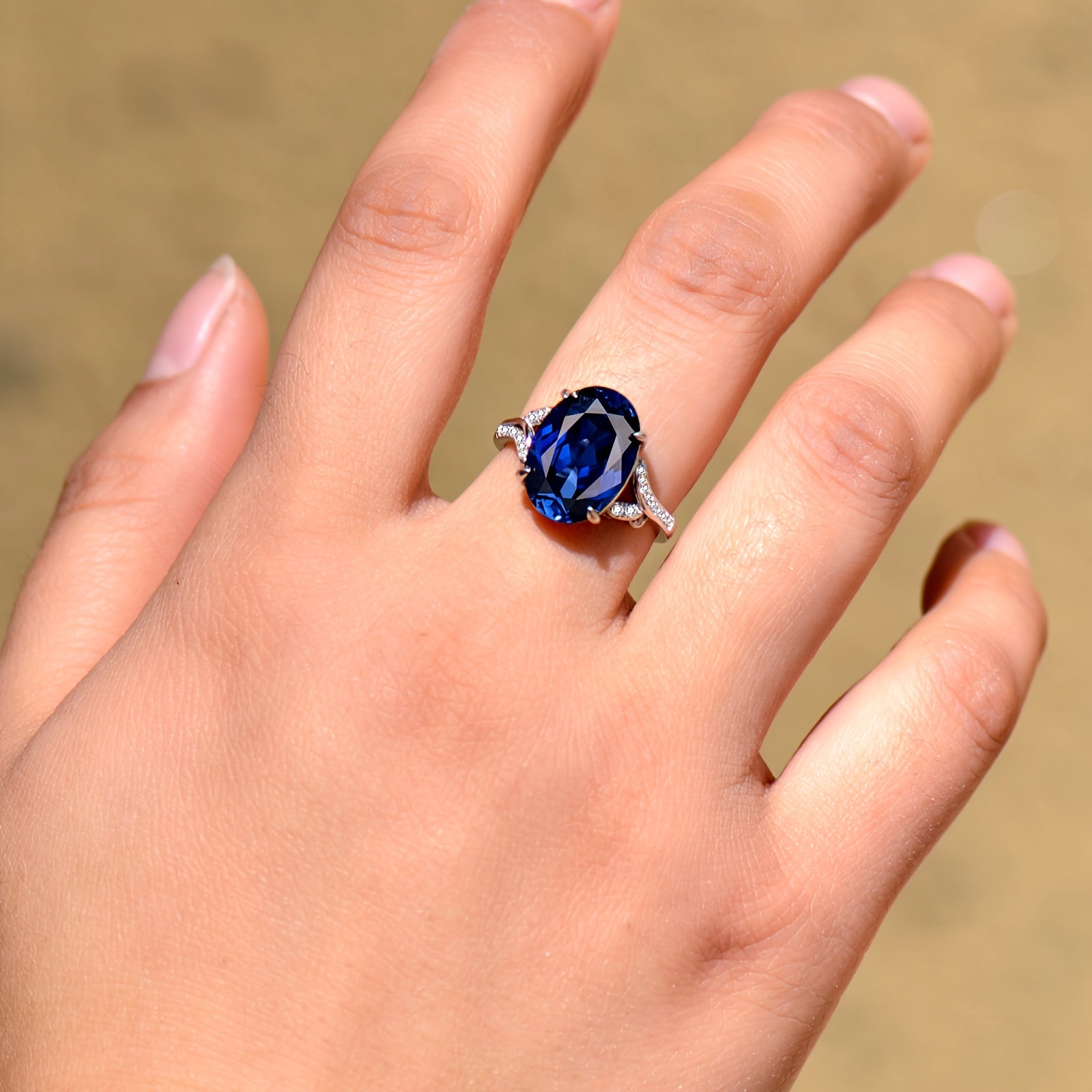 This exquisite 925 Sterling Silver adjustable ring features a stunning synthetic sapphire, making it a trendy and personalized accessory. It is an ideal gift for mothers on special occasions.