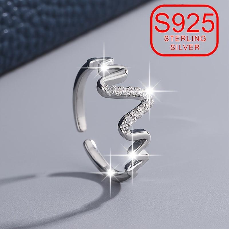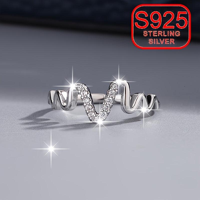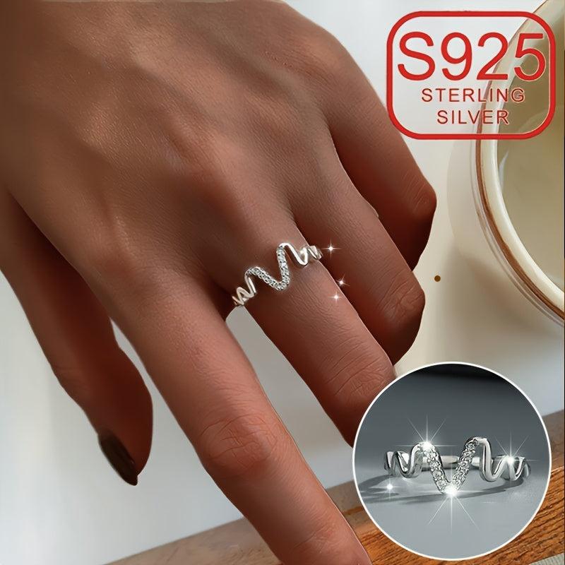 This sterling silver open ring features a wave irregular curve design, perfect for daily wear, weddings, or beach outings. Hypoallergenic and minimalist, it adds a touch of elegance to any outfit.