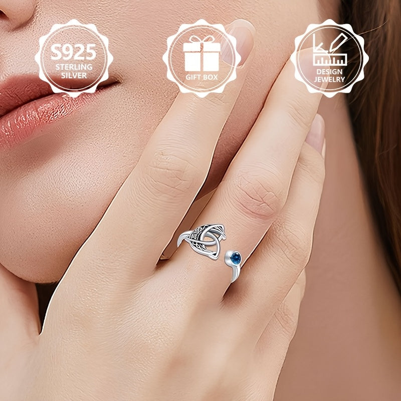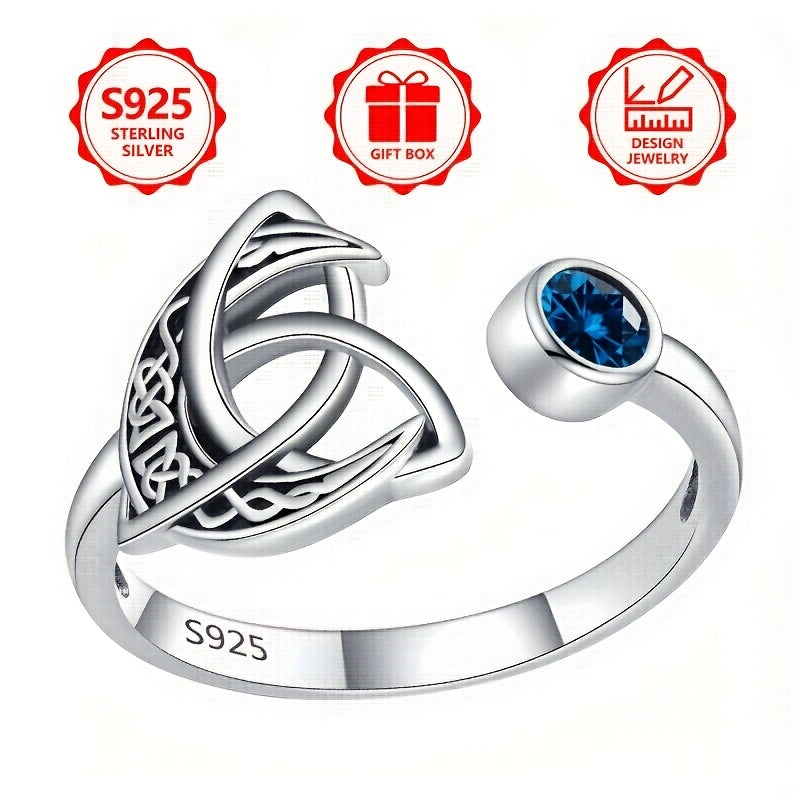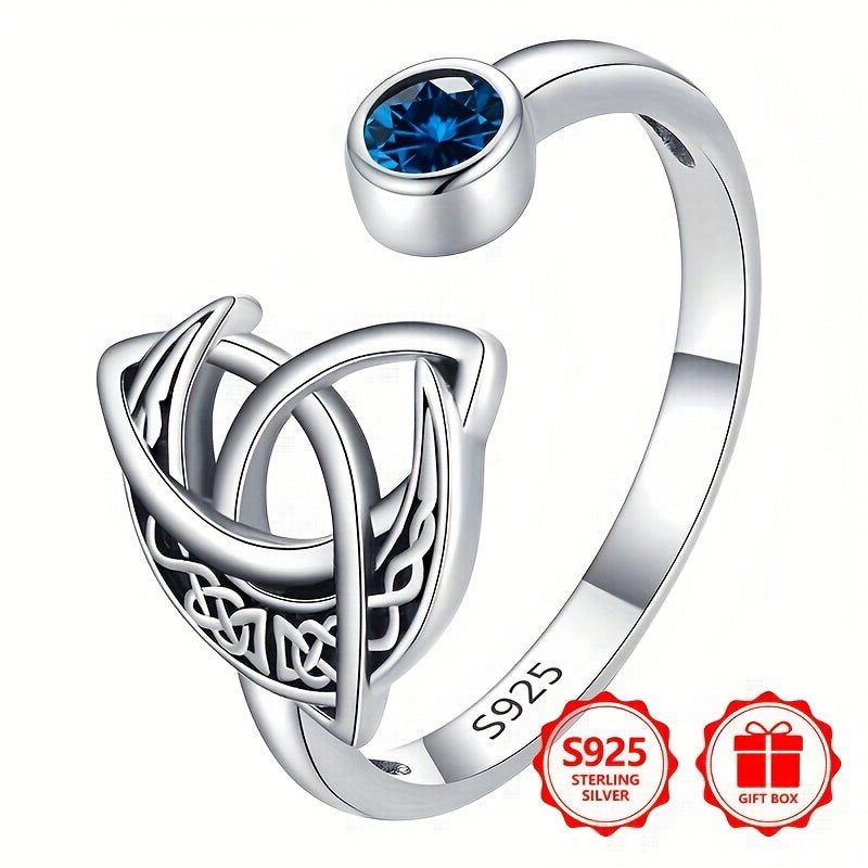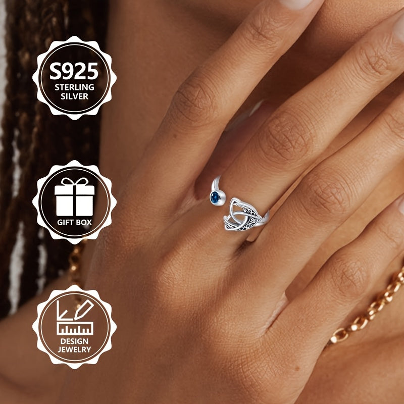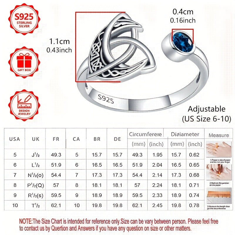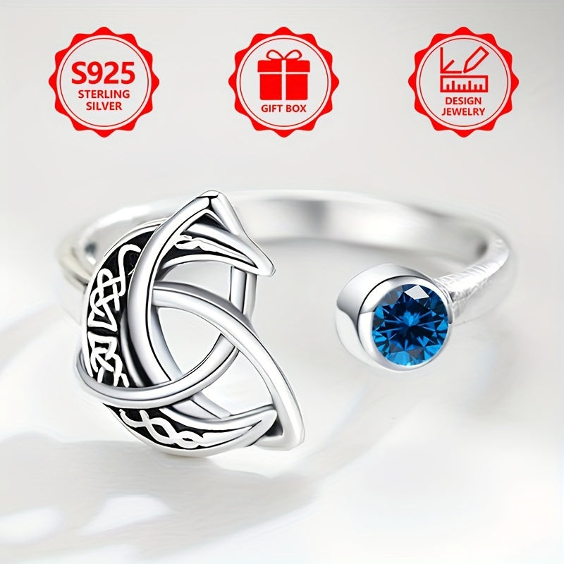 This stunning ring features a beautiful Celtic knot design with a sparkling crescent moon accent. Made from high-quality 925 sterling silver, this open ring is adjustable to fit most finger sizes.