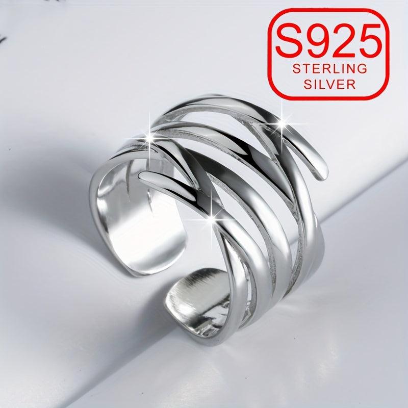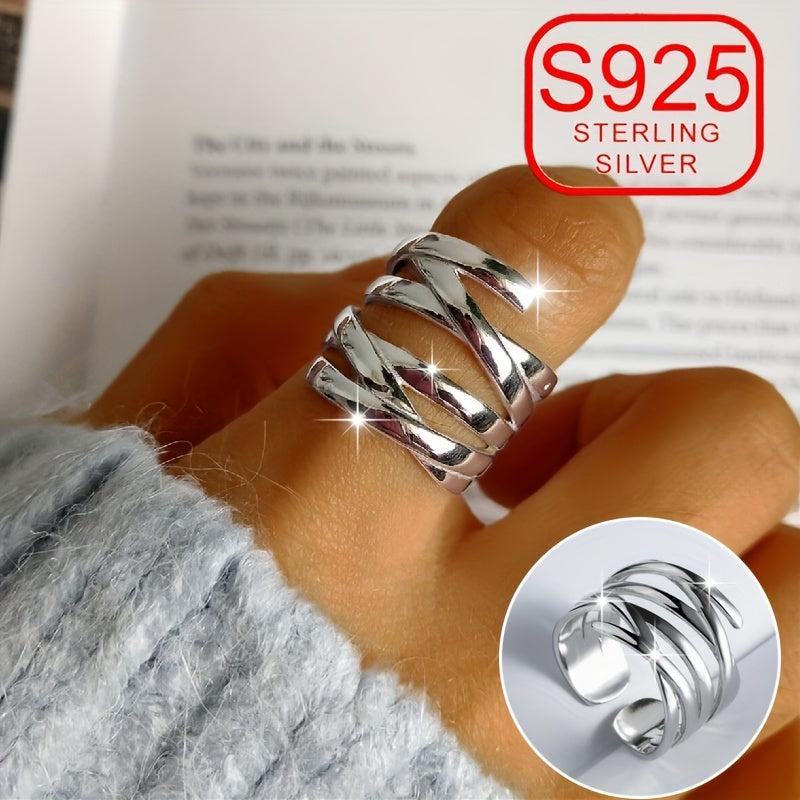 925 Silver Cross Ring for Women Adjustable Open Geometric Hypoallergenic
