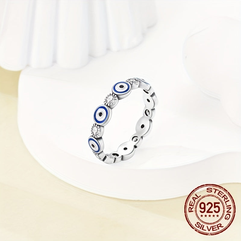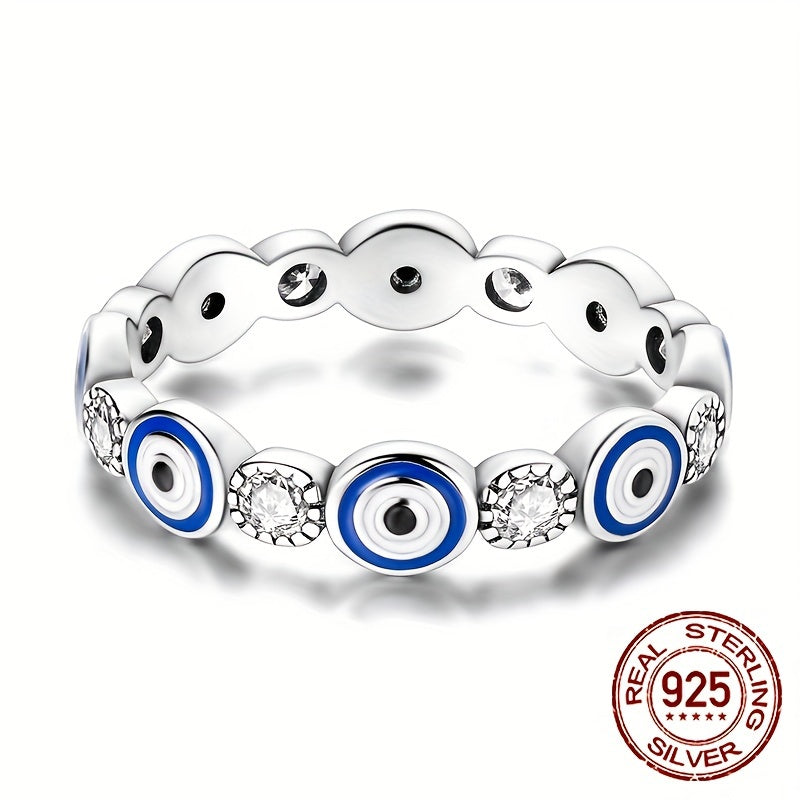 This 925 sterling silver ring is designed with a faith eye and paved with sparkling zirconia. Perfect for daily wear or party outfits, this high-quality jewelry piece adds elegance and style.