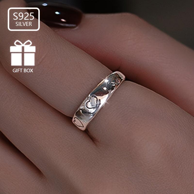 This stunning 925 sterling silver ring features a love heart pattern and is perfect for daily wear, parties, and dating. It adds a touch of elegance and charm to any outfit.