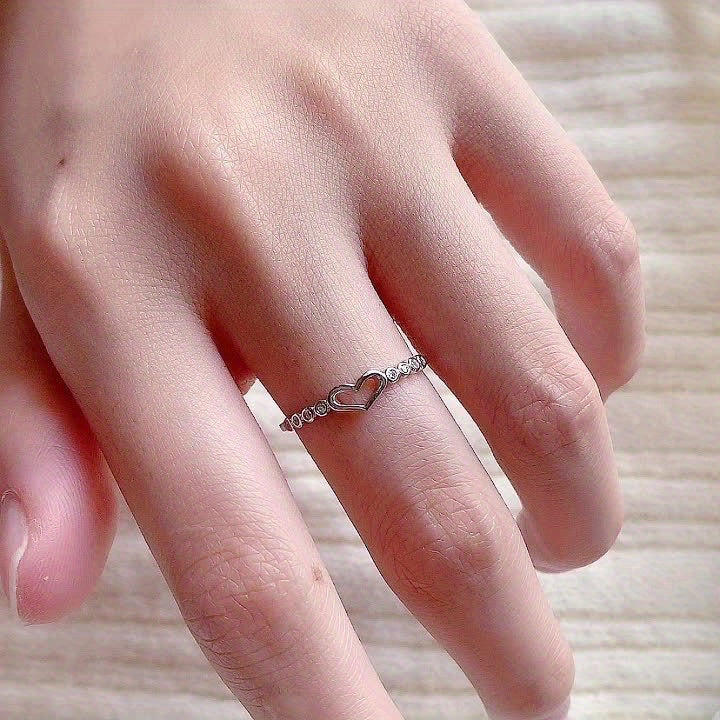 This 925 sterling silver ring features a heart design with micro zirconia stones on a narrow band. It adds a touch of shimmer to your daily outfits and makes a sweet gift for yourself or a loved one.