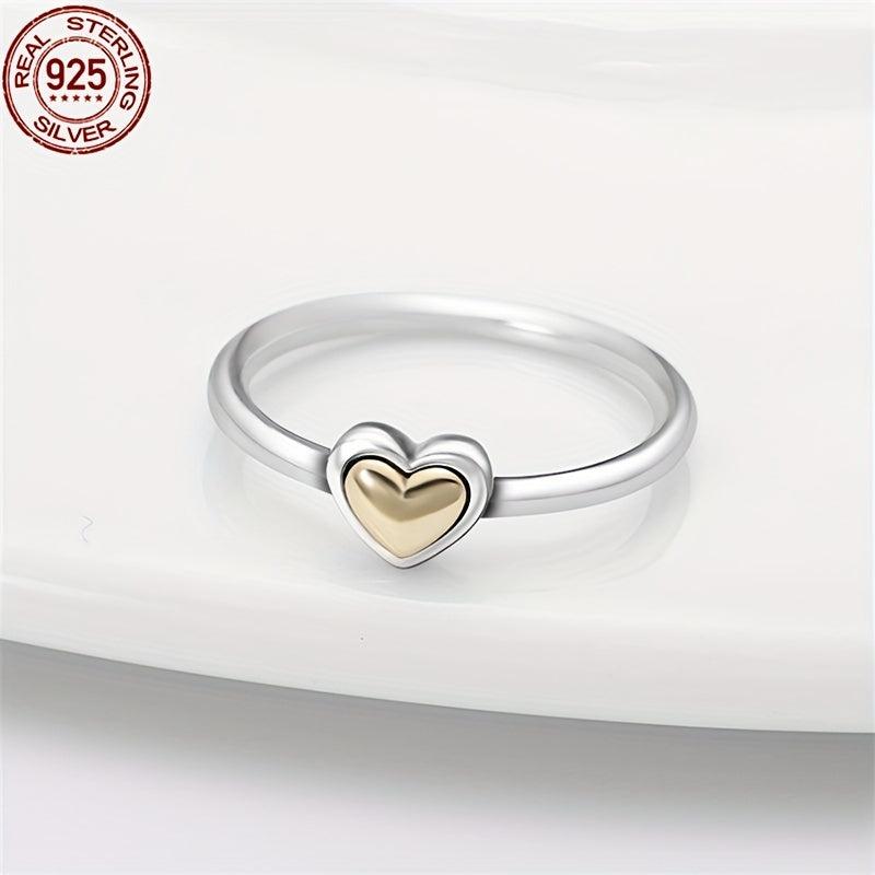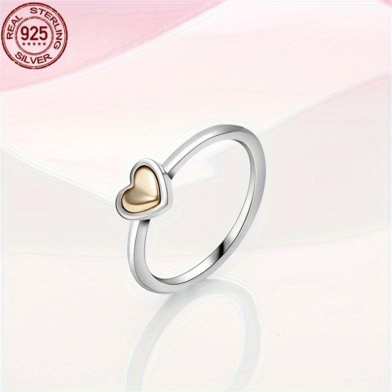 This 925 sterling silver ring features a heart symbol, adding sweetness to your look. Perfect for daily wear and parties, this high-quality jewelry piece complements various outfits.