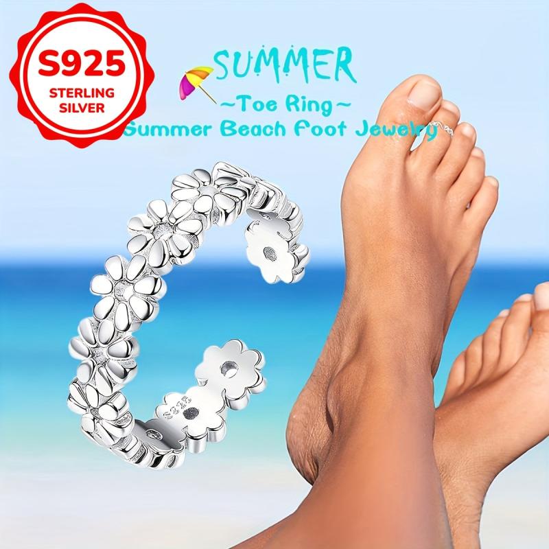 Add a touch of elegance to your toes with this 925 silver hibiscus toe ring. Its adjustable design makes it perfect for daily wear and its minimalist style complements any outfit.