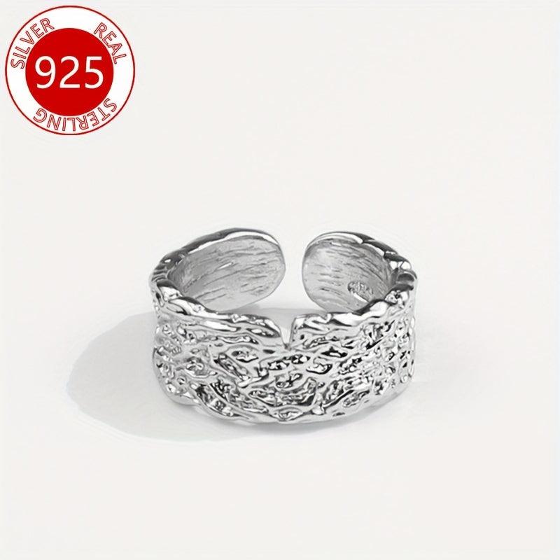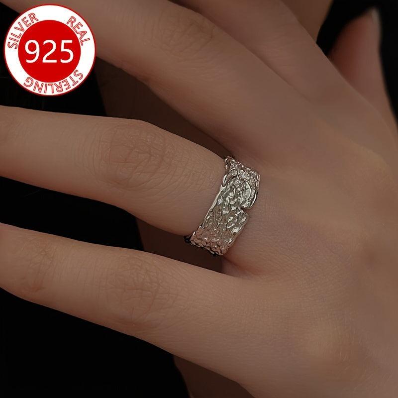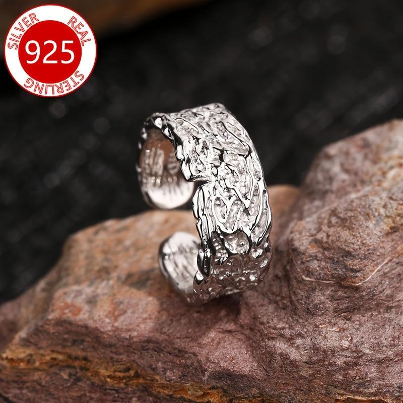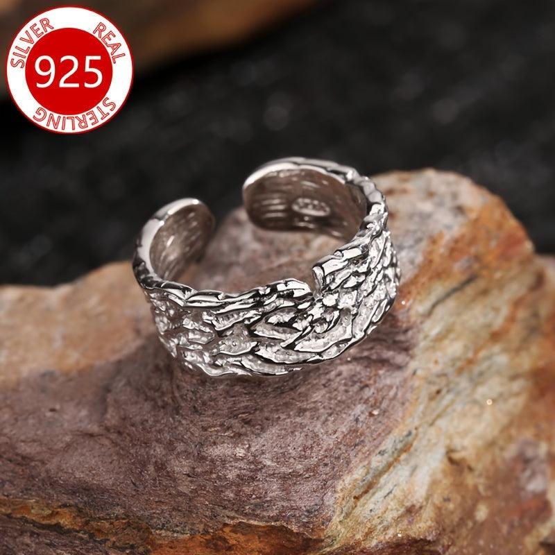 925 Silver Hip Hop Irregular Texture Ring Adjustable Opening