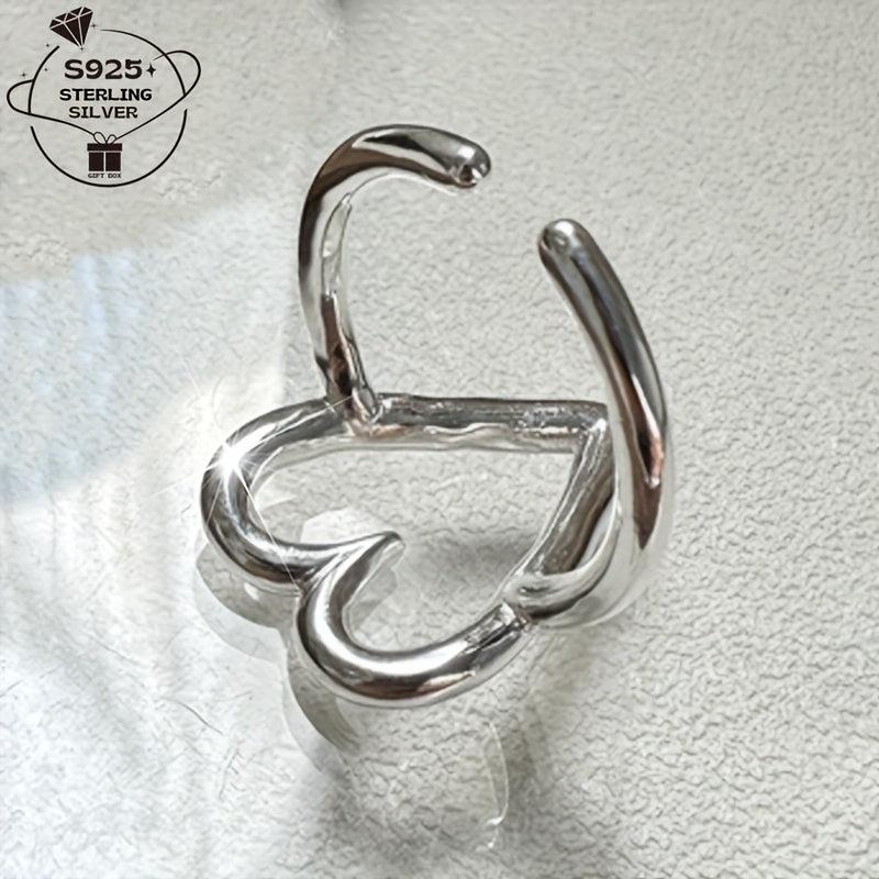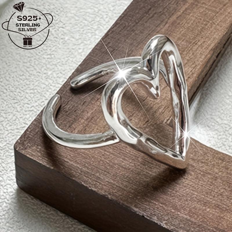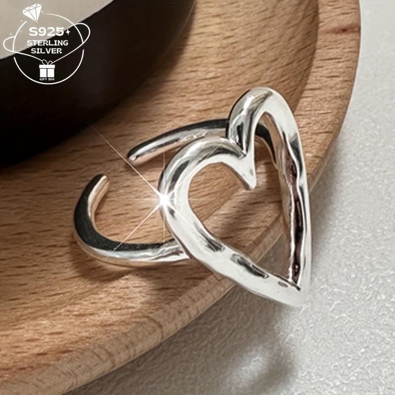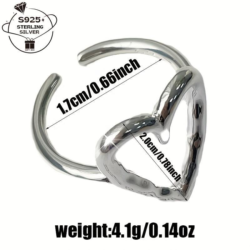 This charming ring is made of 925 sterling silver and features a hollow love heart design. It's perfect for daily wear, couples, BFFs, weddings, parties, and beach vacations.