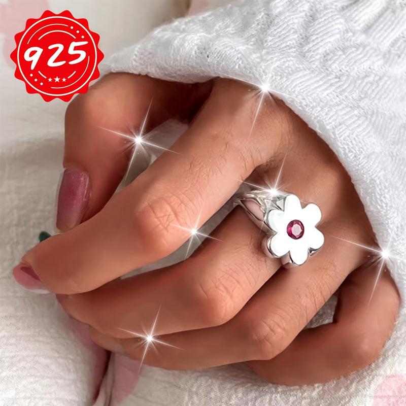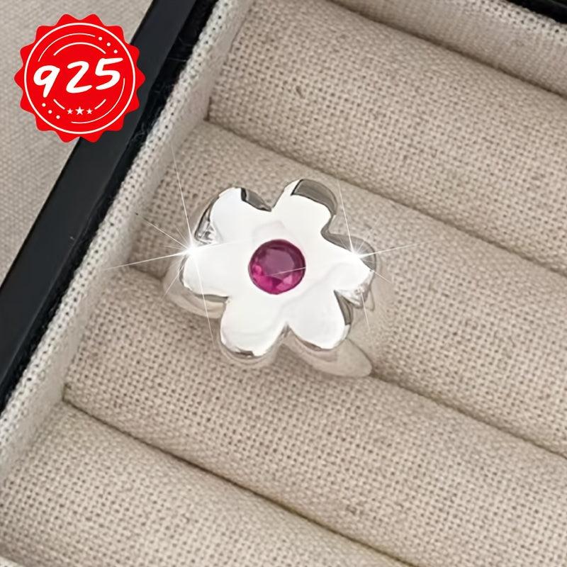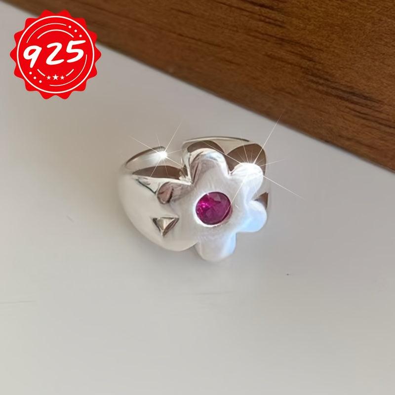 This 925 silver ring is hypoallergenic and features a beautiful flower design. Perfect for wearing on your index finger or as a tail ring.