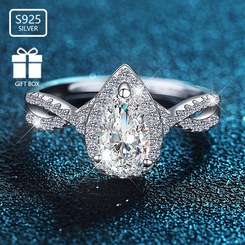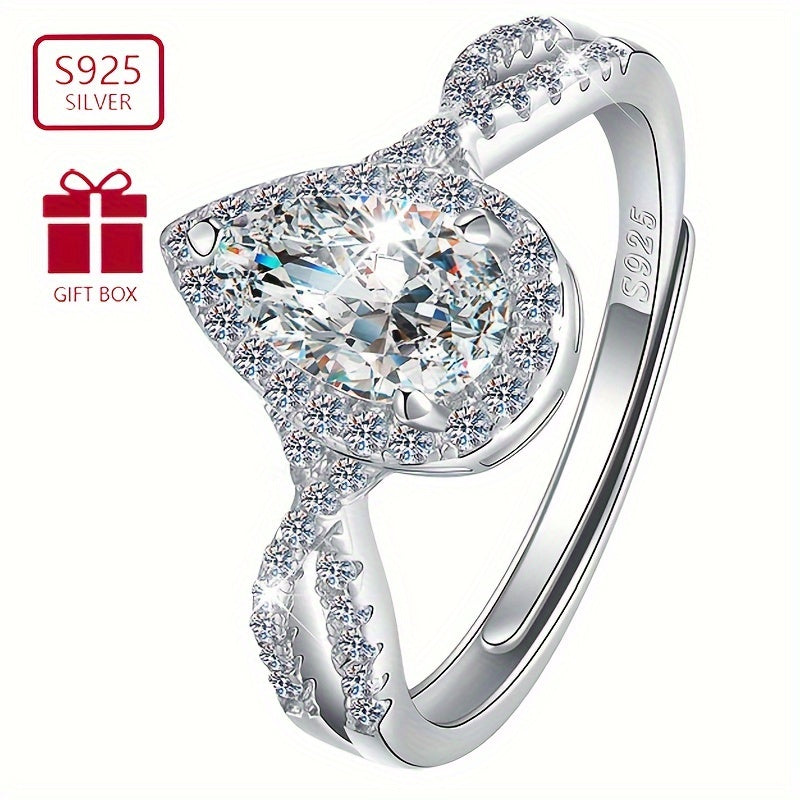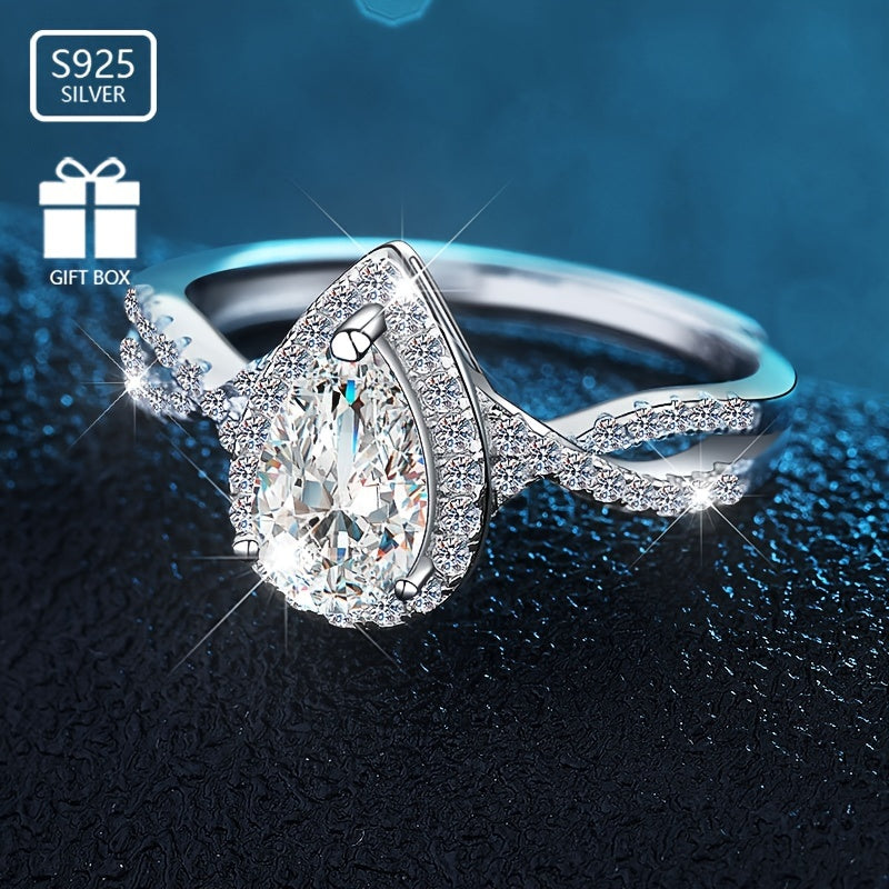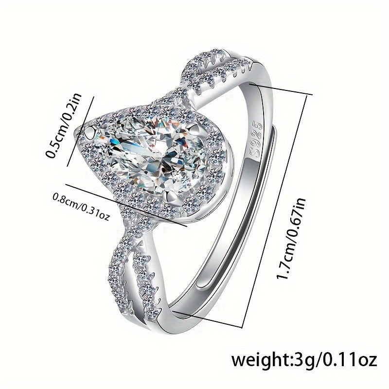 Stylish open ring made of 925 silver featuring an irregular water drop pear-shaped synthetic zirconia. Weighs approximately 3g, making it a perfect gift.