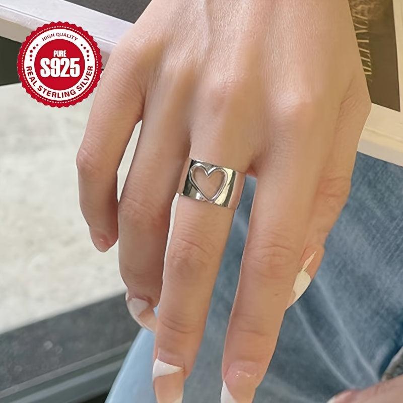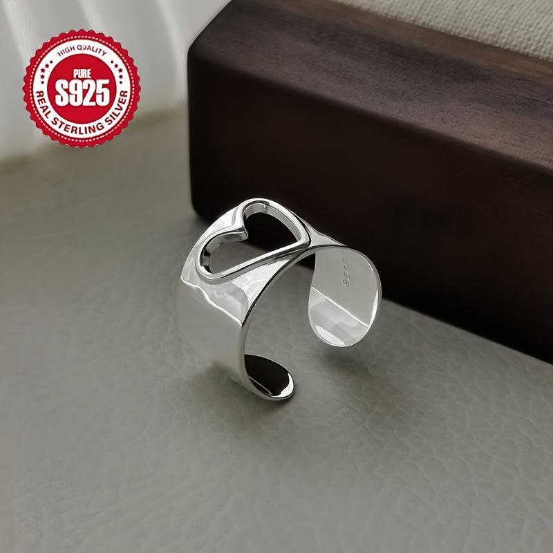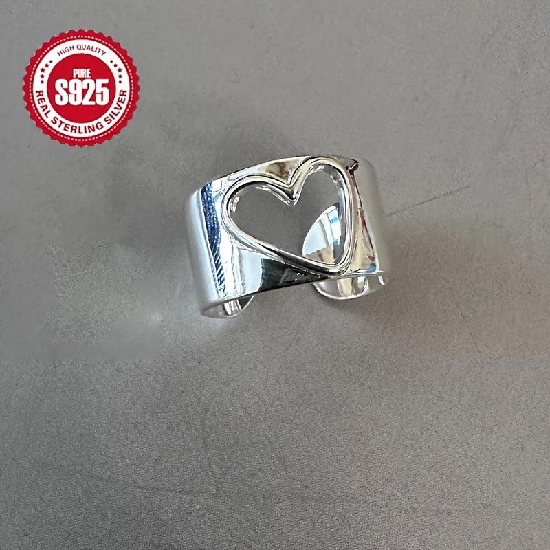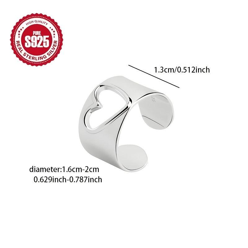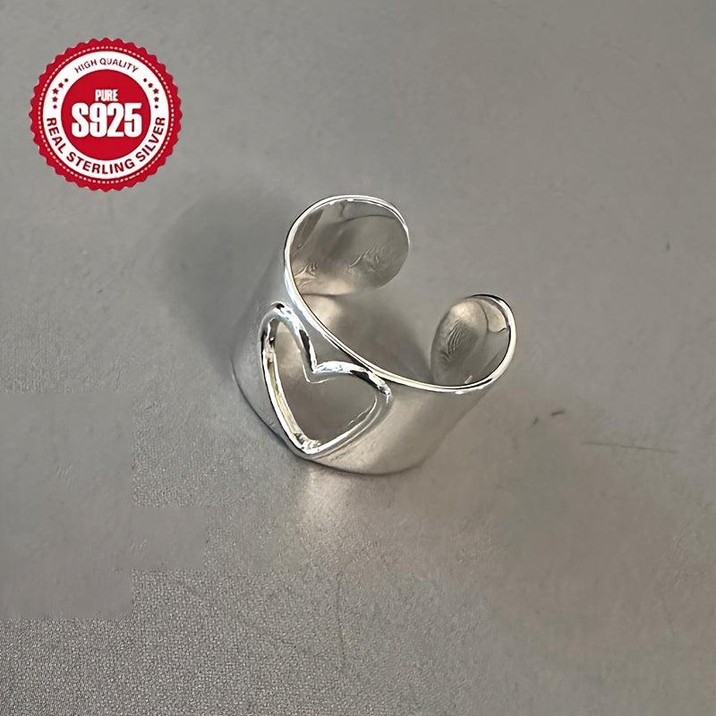 This 925 silver open ring features a glossy hollow peach heart design, perfect for daily wear or special occasions like weddings and banquets. It is a light and comfortable gift for couples, friends, or loved ones.
