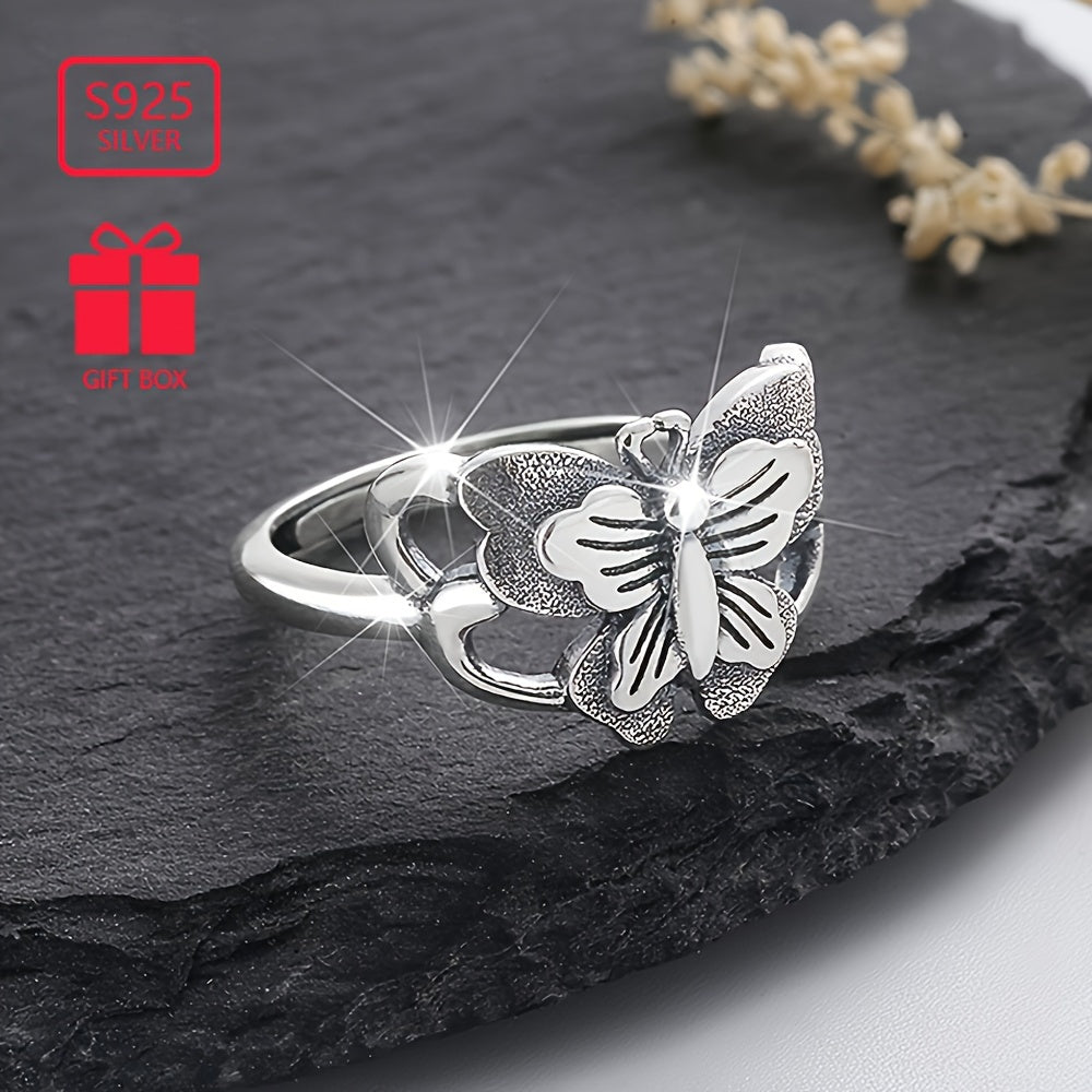 This stunning ring features a retro ethnic style butterfly shape design, crafted in high-quality 925 sterling silver. Perfect for adding a touch of vintage charm to any outfit.
