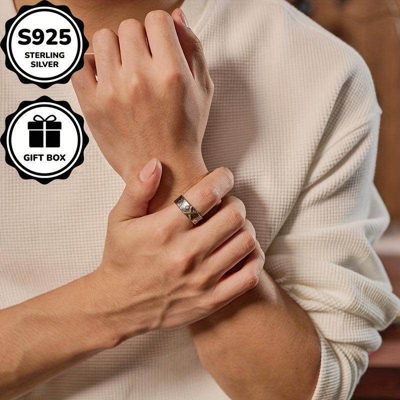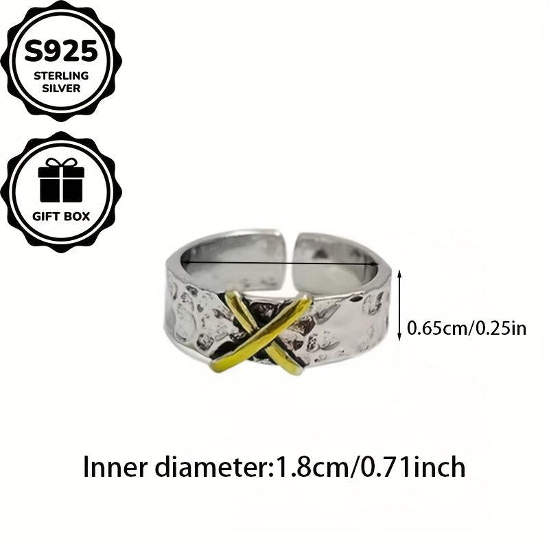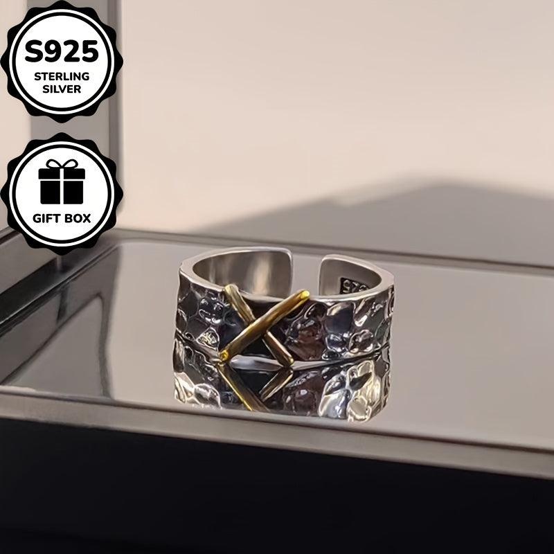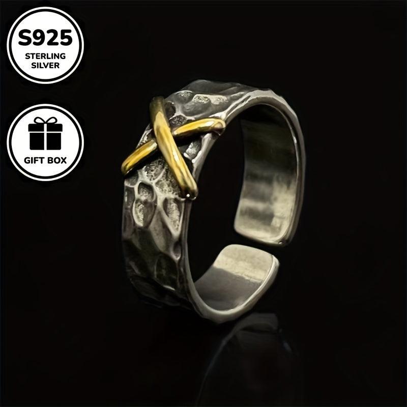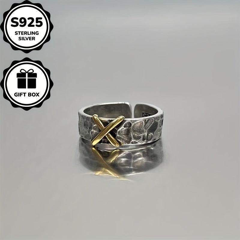 This 925 silver ring features a low allergy design with a retro hammered X open style, suitable for both men and women.