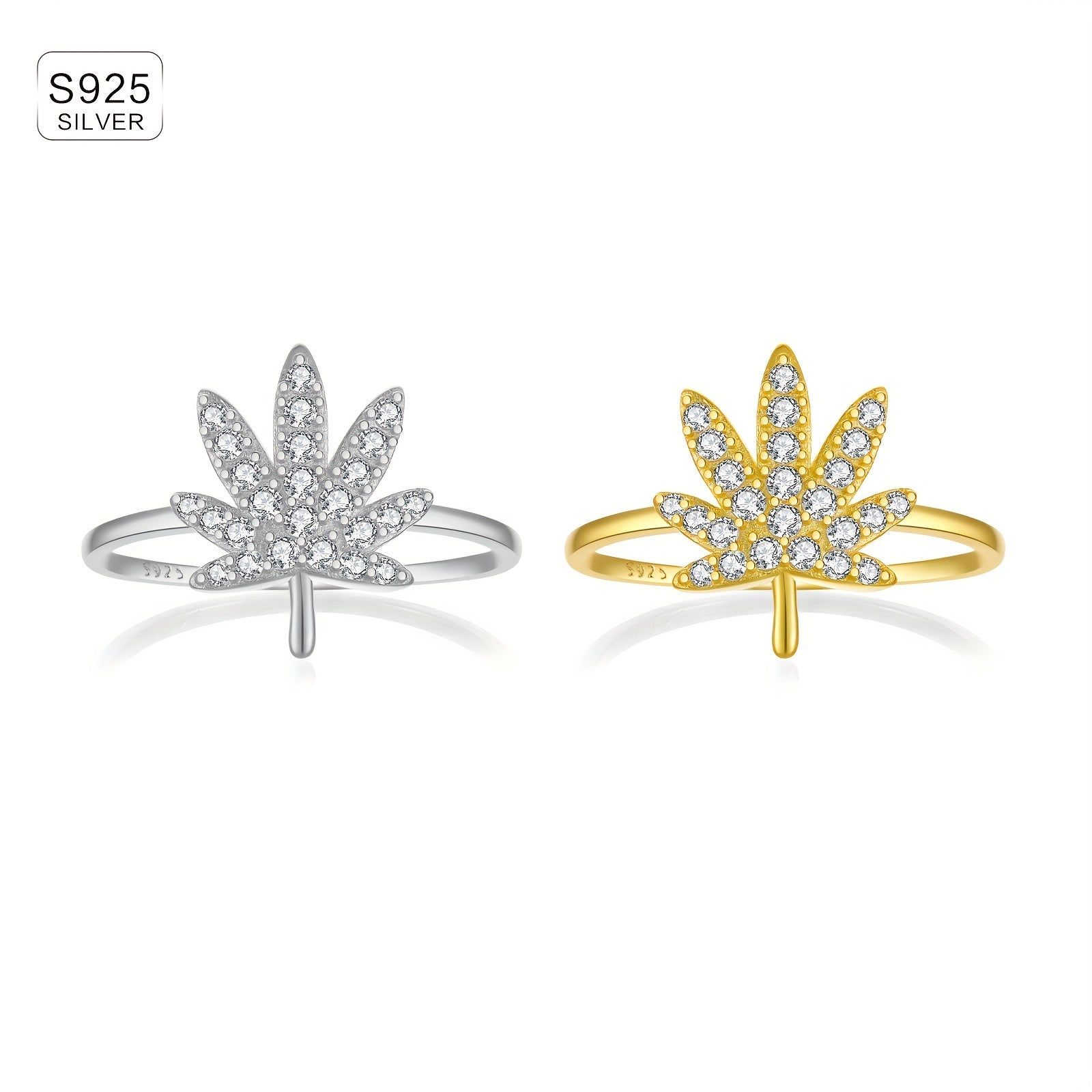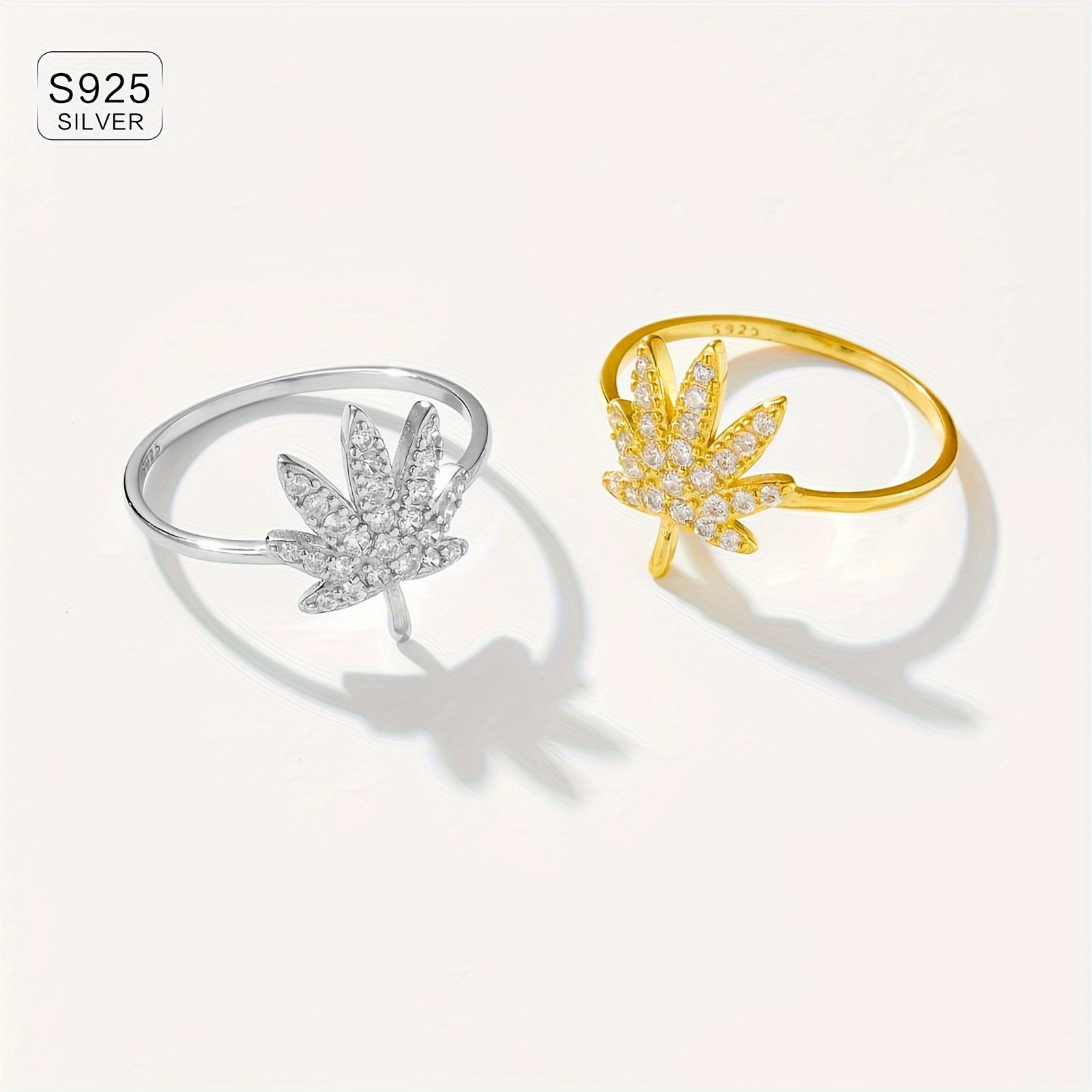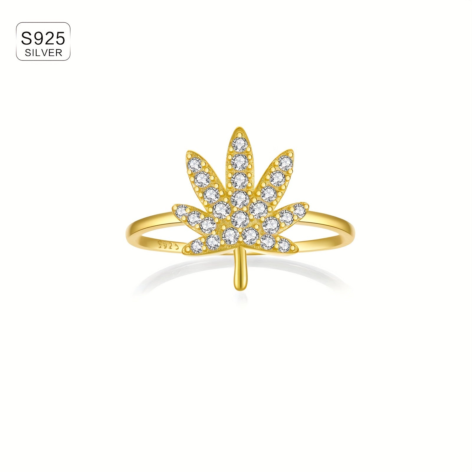 925 Silver Ring 18k Golden Plated Maple Leaf Zirconia Sparkle
