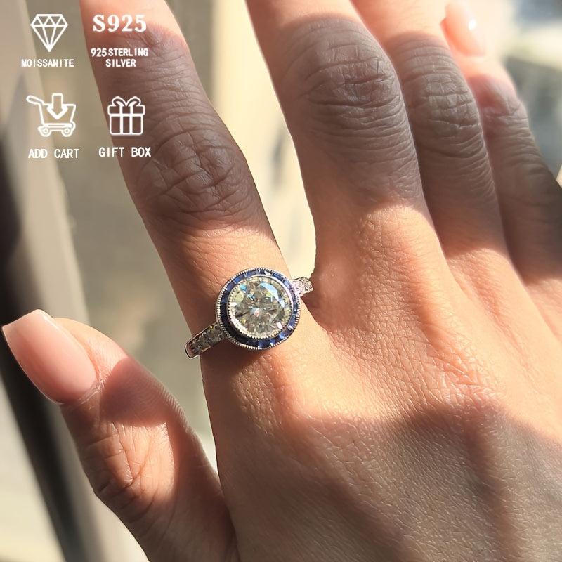 This stunning ring features a 2ct Moissanite stone in a royal style setting. Crafted from 925 silver, it is perfect for anniversaries and special occasions. Hypoallergenic and elegant.