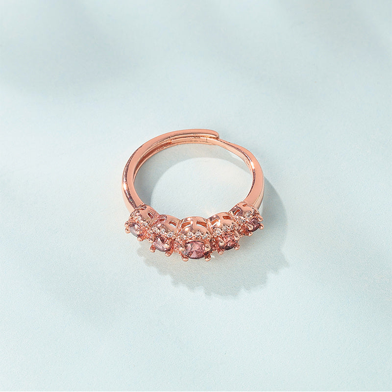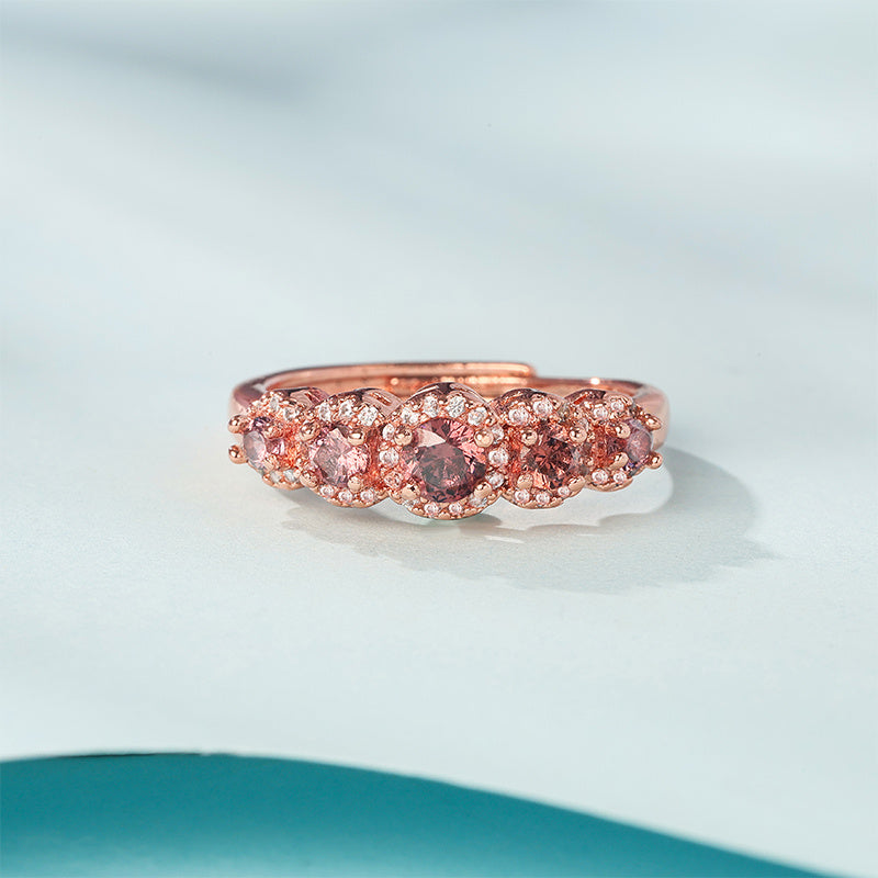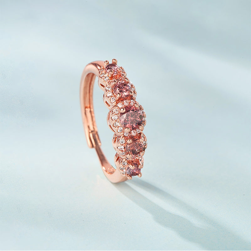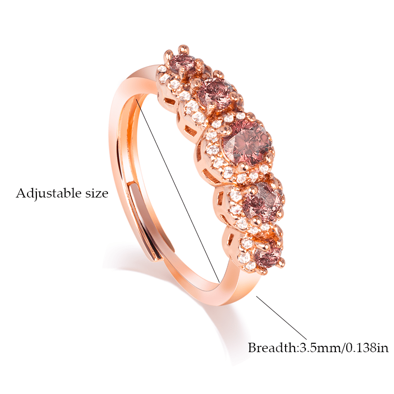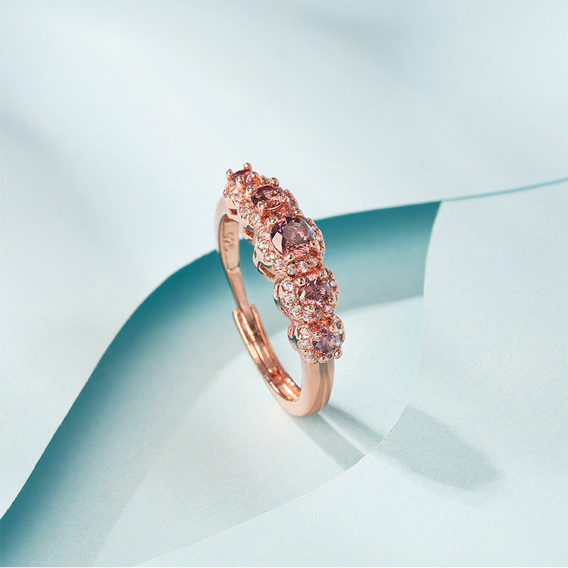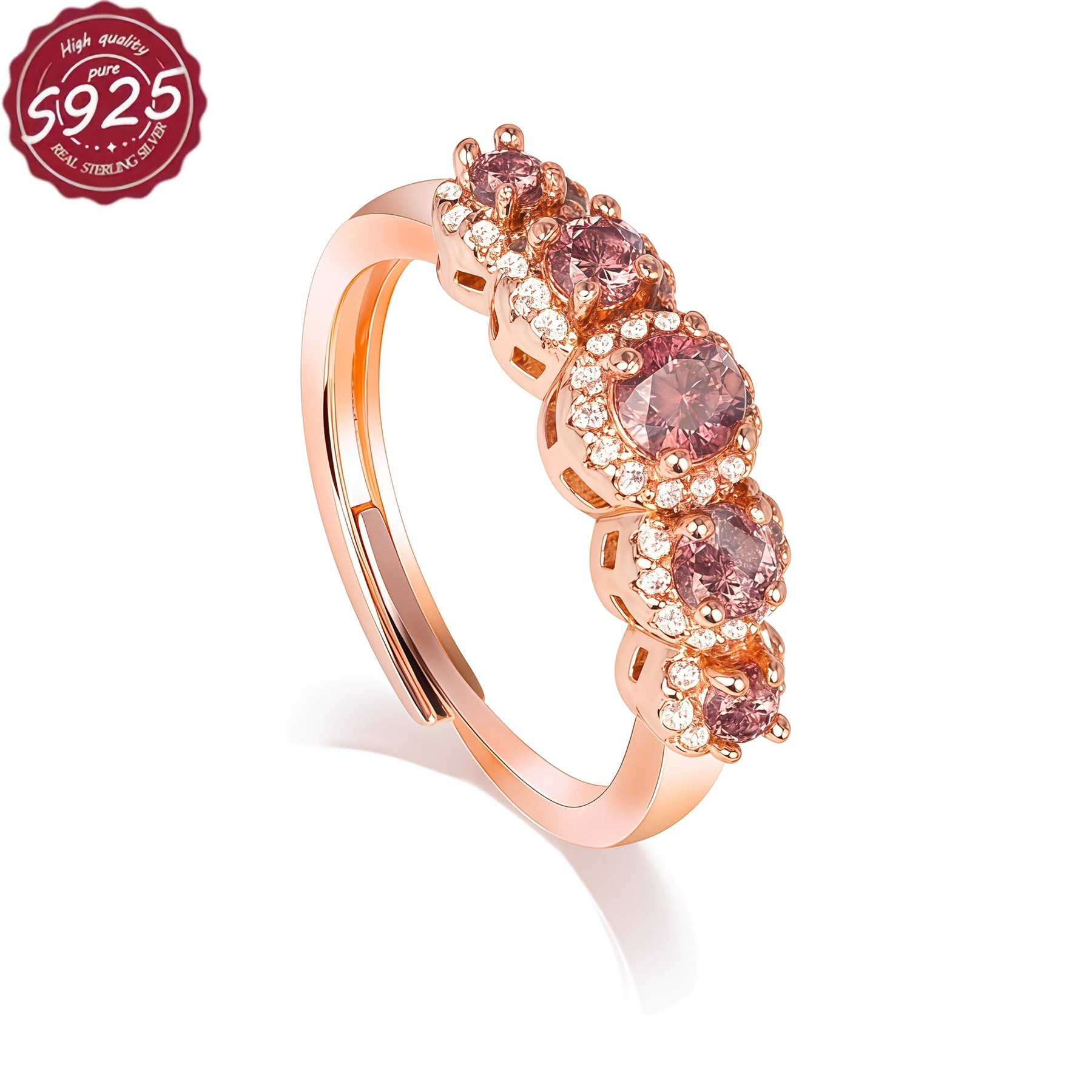 Elegant 925 sterling silver ring with rose golden plating, featuring a garnet stone surrounded by sparkling cubic zirconia. Perfect for Christmas or anniversary gift. Comes in a lovely gift box.