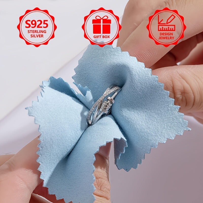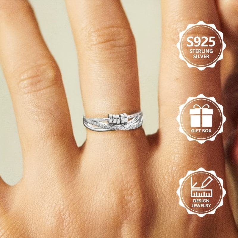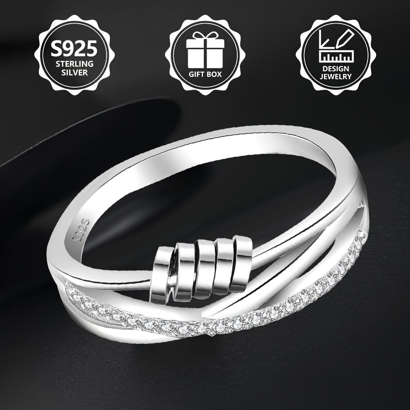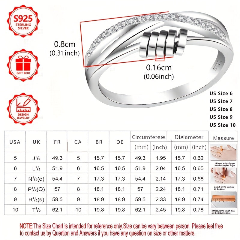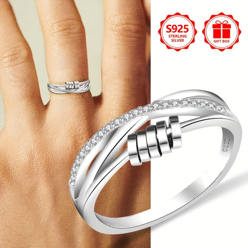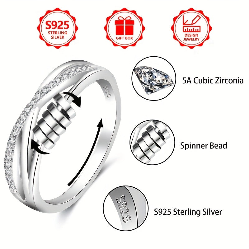 Add a touch of elegance to your outfit with this stunning 925 silver rotating ring featuring a cross design and sparkling zirconia stones.