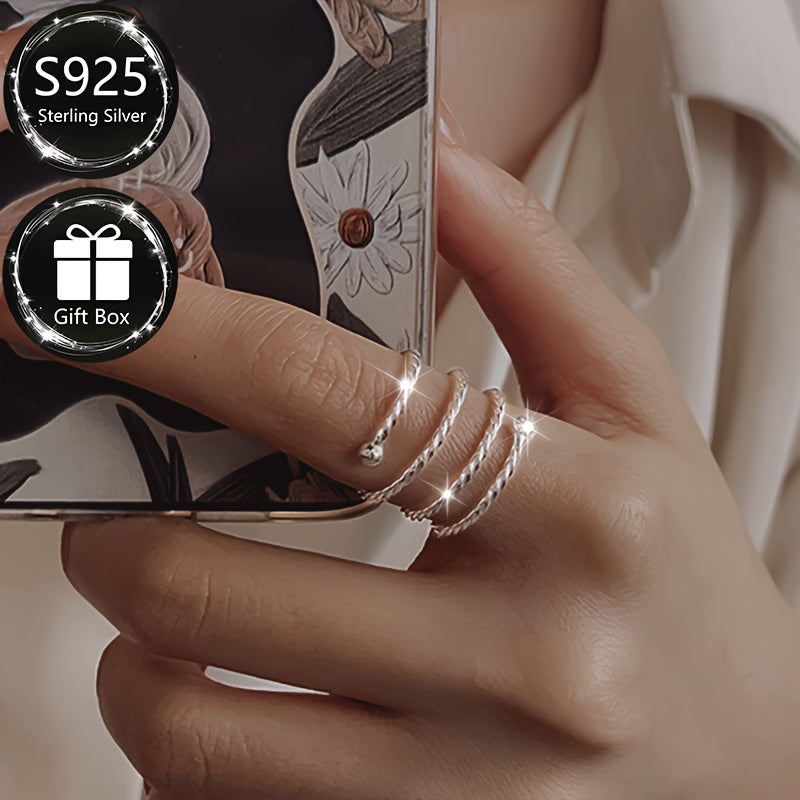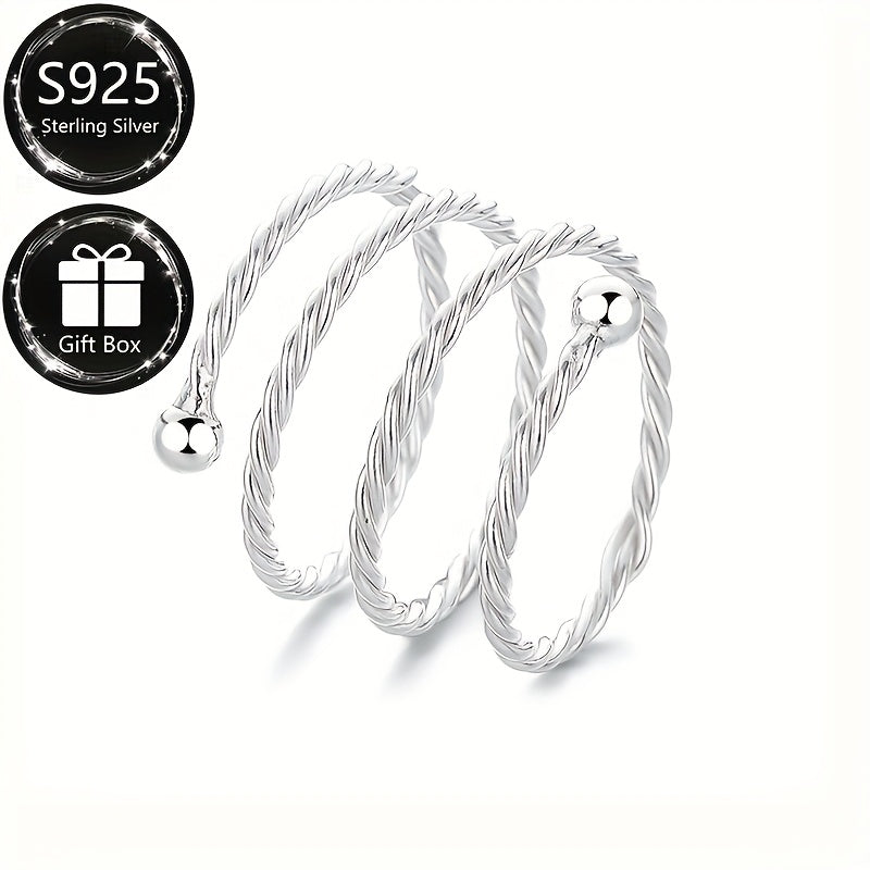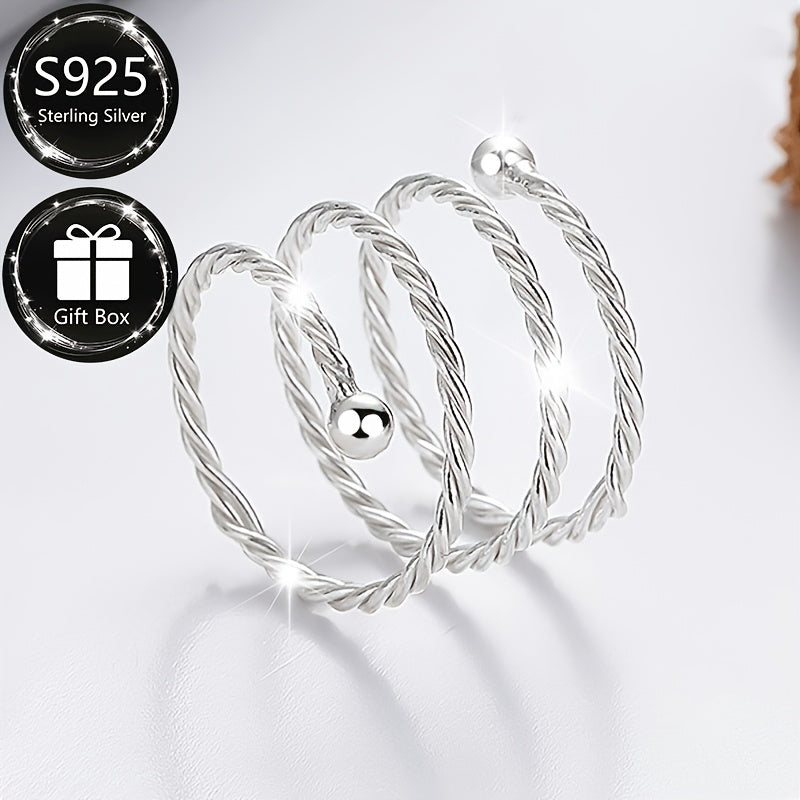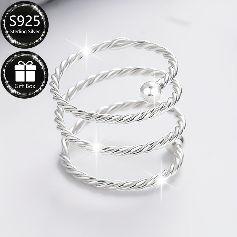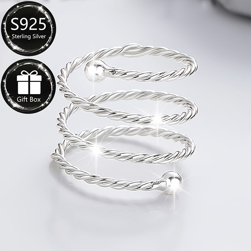 Elegant 925 sterling silver ring with spiral design. This adjustable open ring is perfect for daily wear or as a gift for women. Its intricate twist and knuckle strap design add a touch of class to any outfit.