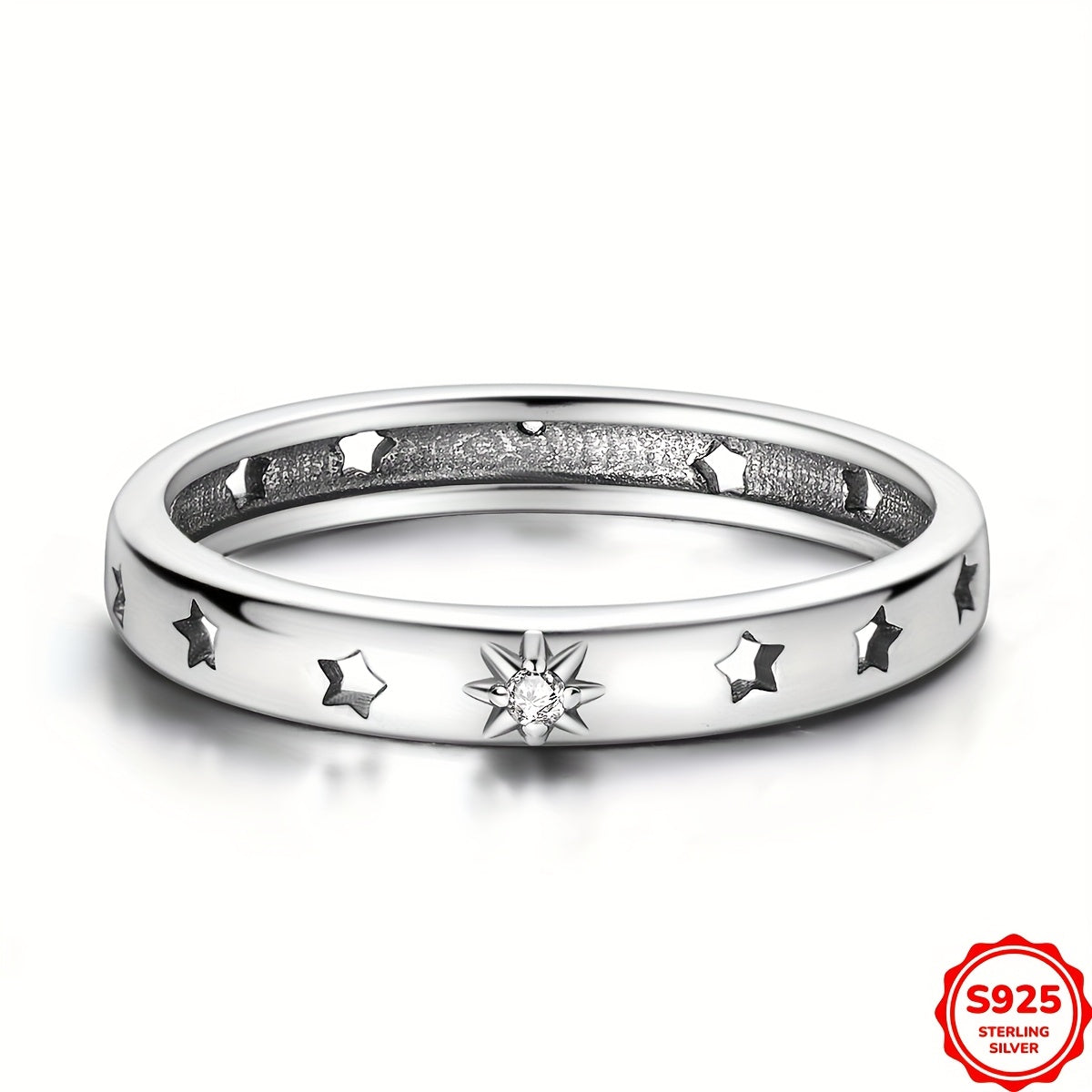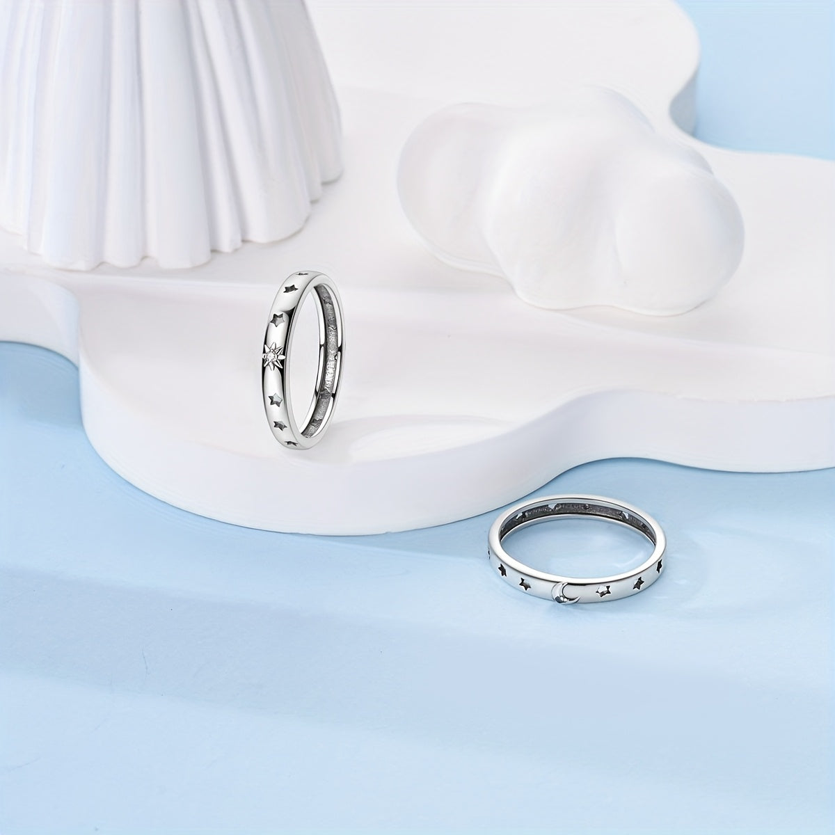 Elegant 925 silver star ring designed for women, perfect for wedding, engagement, or birthday gift. The minimalistic style adds a touch of sophistication to any outfit.
