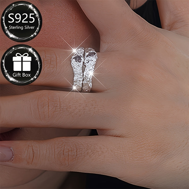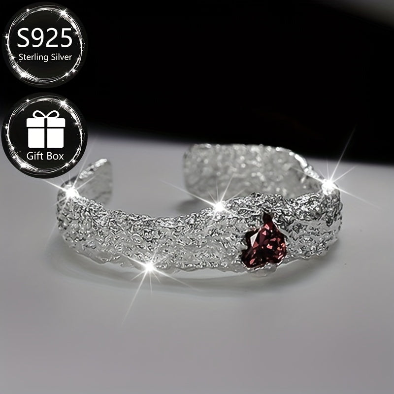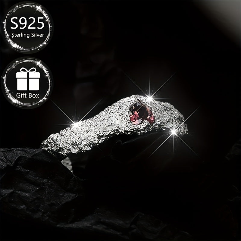 Stylish, cold-style open ring with synthetic zirconia inlay. Perfect for women, total weight 3.6 grams.