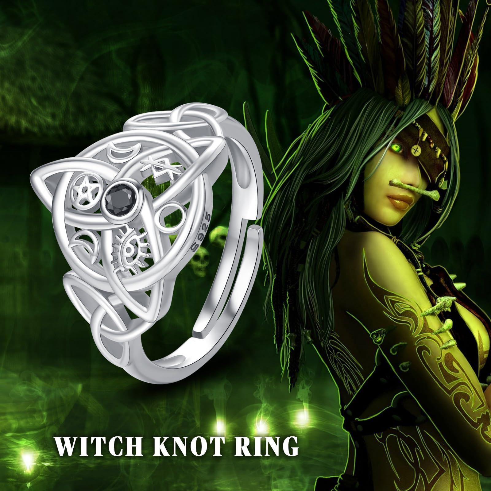Embrace the mystique with this 925 sterling silver Celtic knot ring, perfect for witches and enthusiasts. The adjustable design ensures a comfortable fit.
