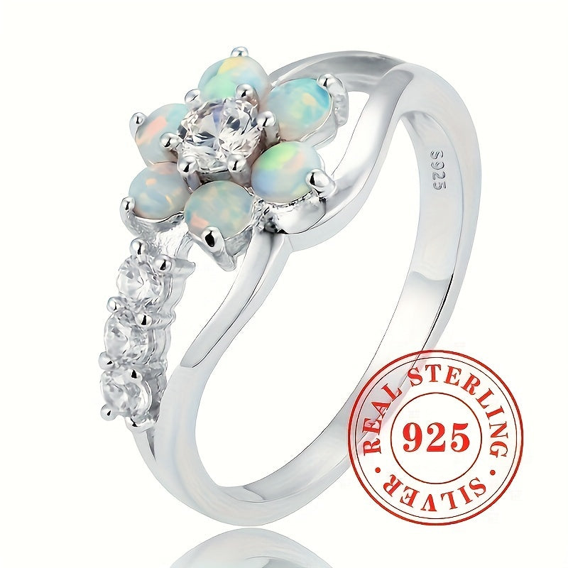 Elegant 925 sterling silver ring with synthetic zirconia flower design, perfect for engagement, wedding, banquet, or anniversary gift.