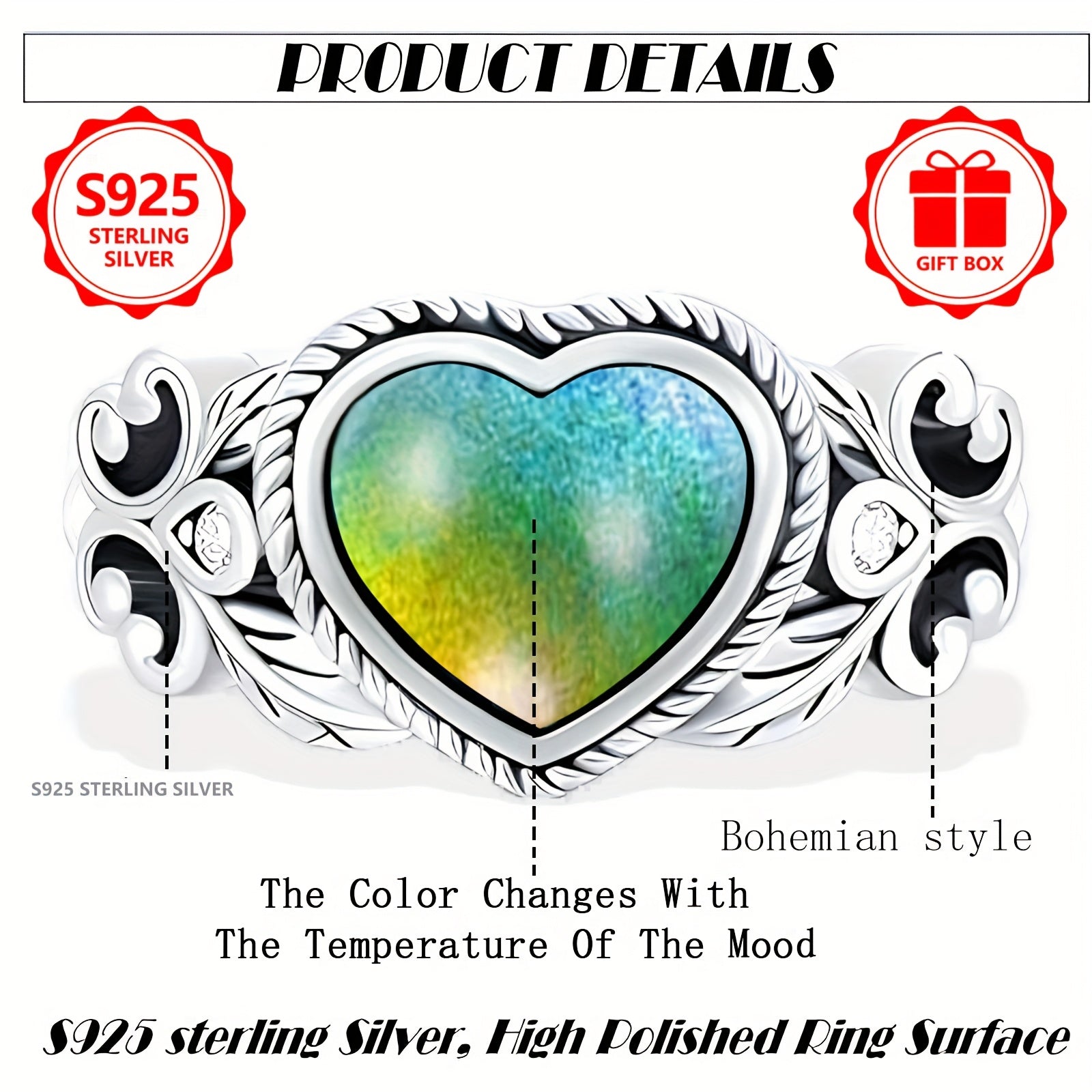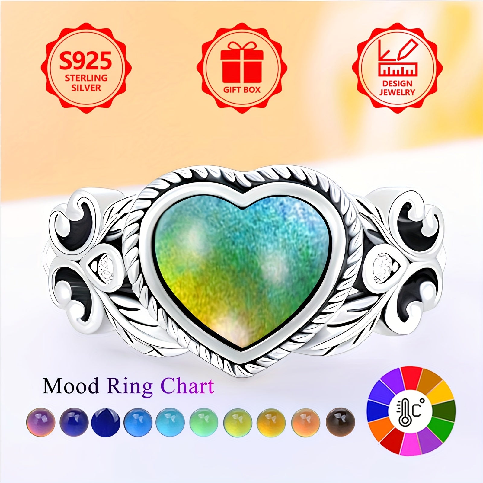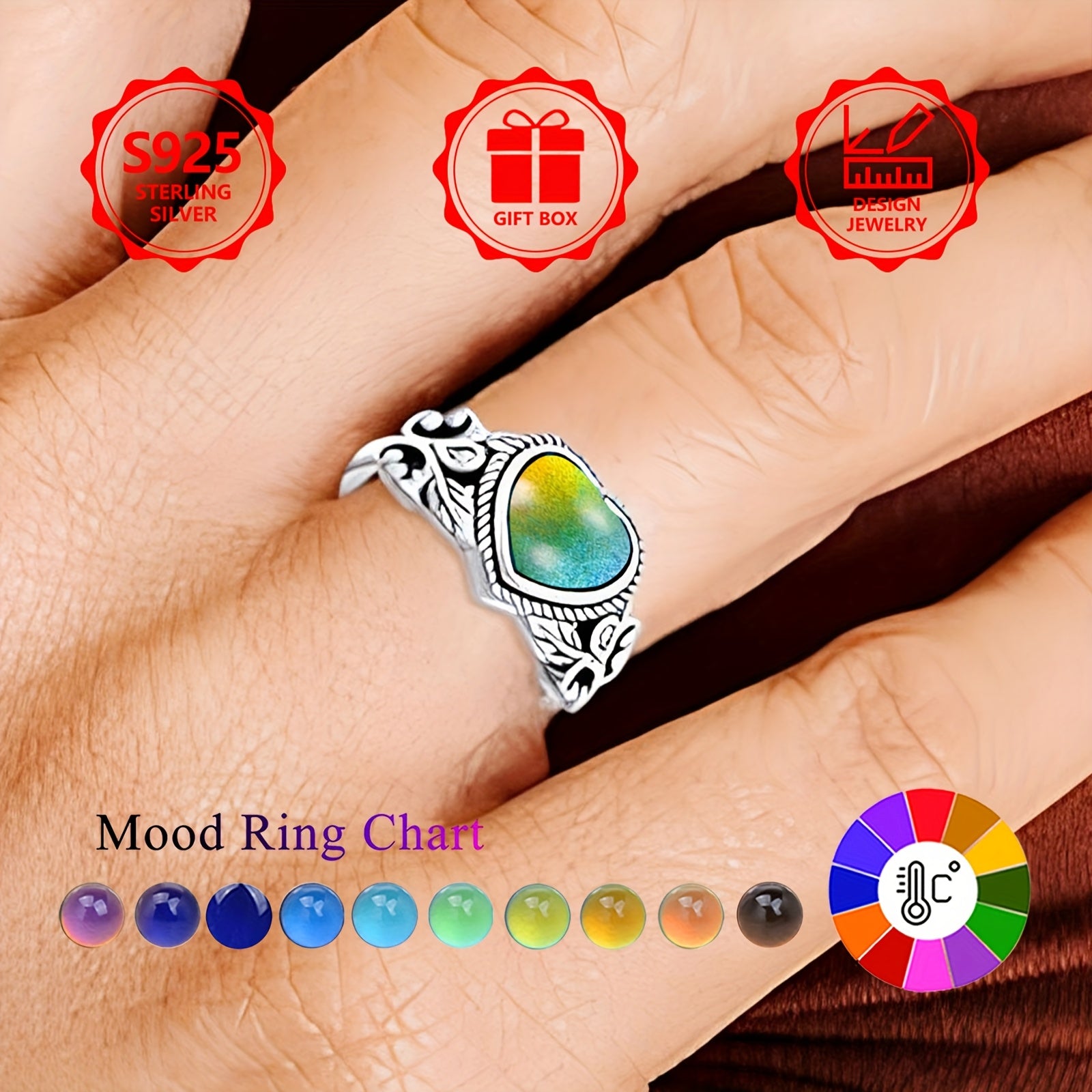 This vintage 925 sterling silver mood ring features a heart-shaped design that changes color to reflect your emotions. Perfect daily accessory, hypoallergenic and a great gift for Thanksgiving celebrations.