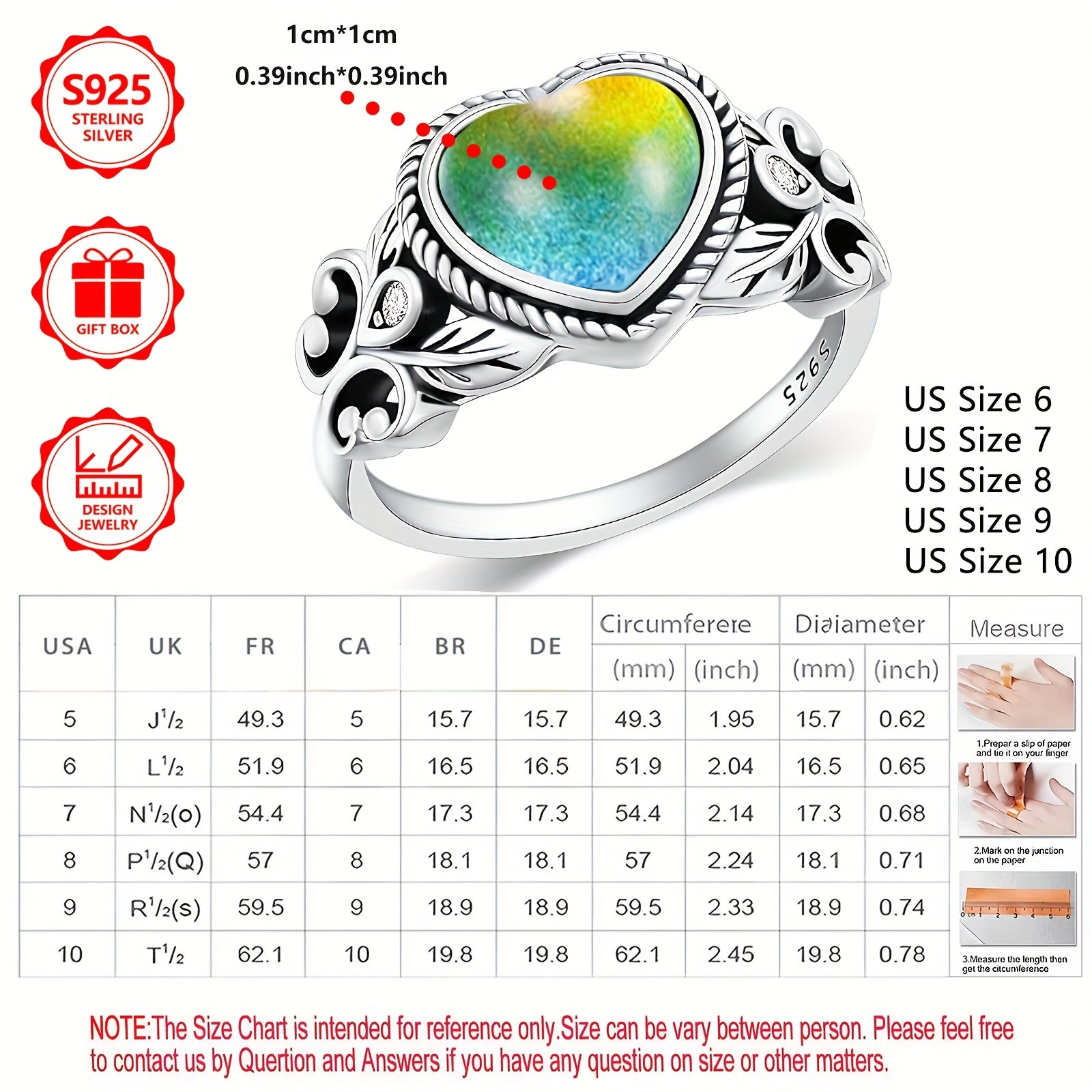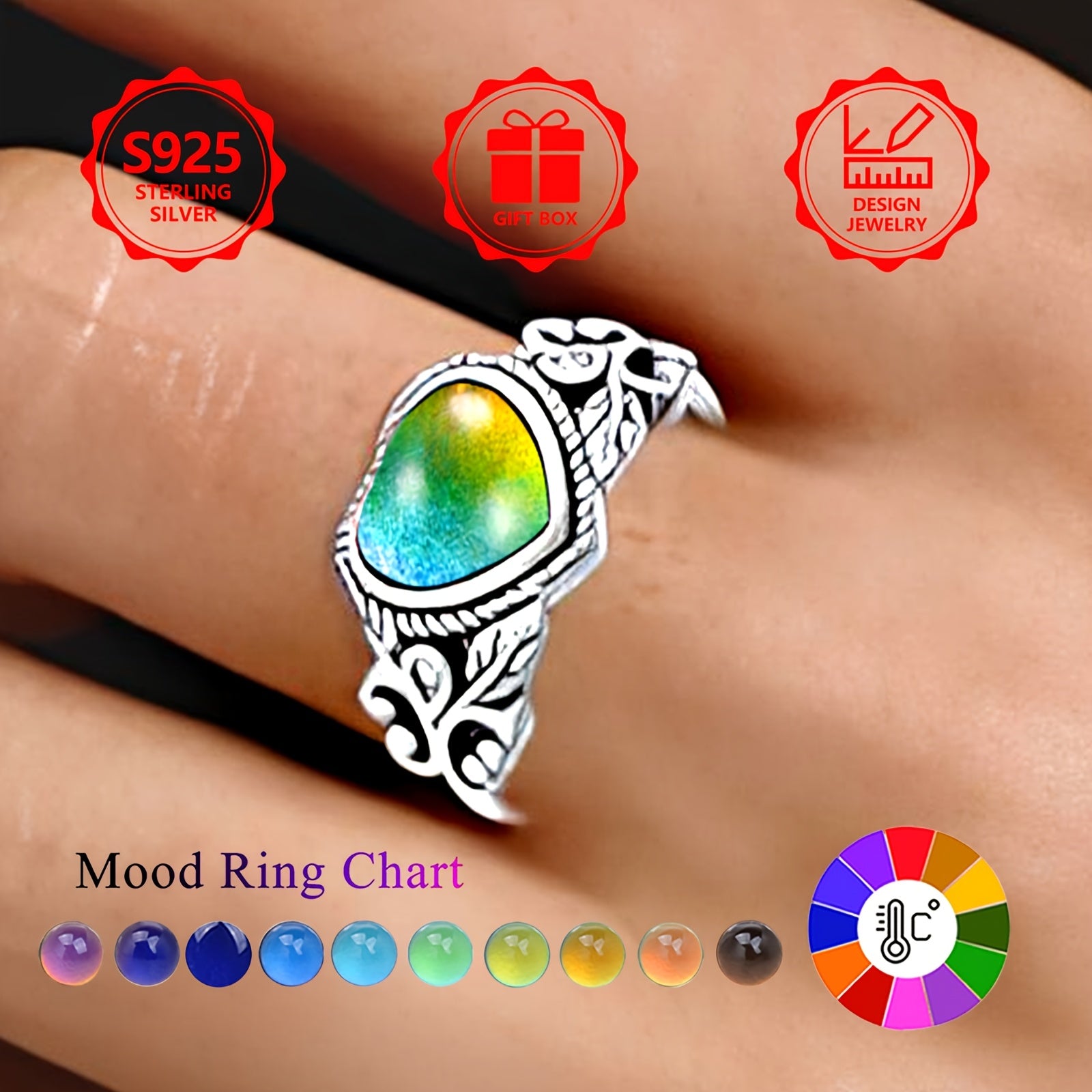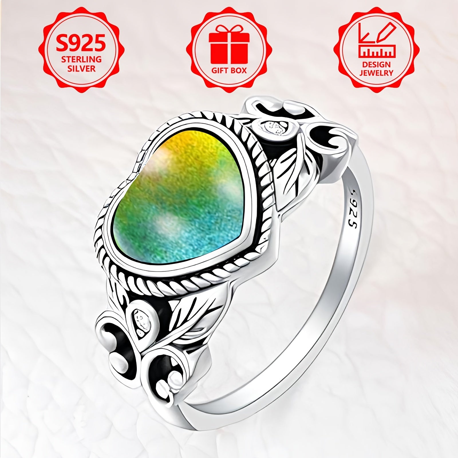 This vintage 925 sterling silver mood ring features a heart-shaped design that changes color to reflect your emotions. Perfect daily accessory, hypoallergenic and a great gift for Thanksgiving celebrations.