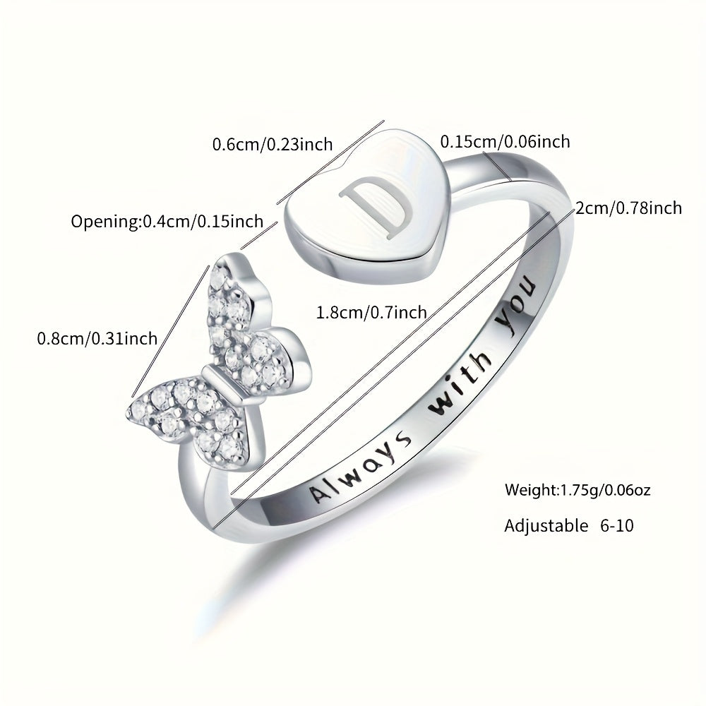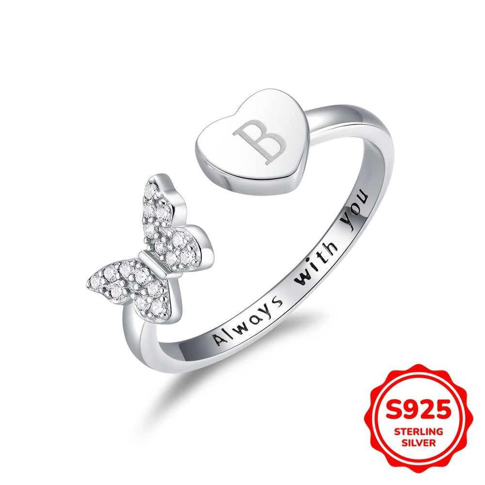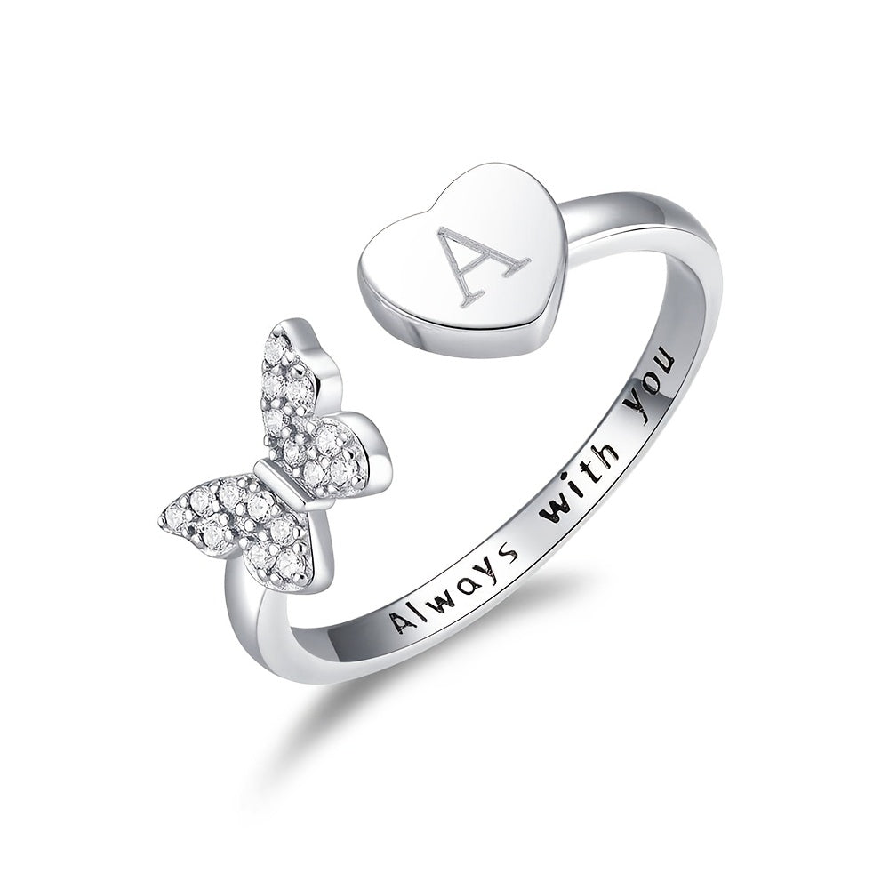 This stunning 925 sterling silver butterfly letter ring features a combination cubic zirconia stone and is engraved with 'Always with You'. A perfect gift for your loved one.