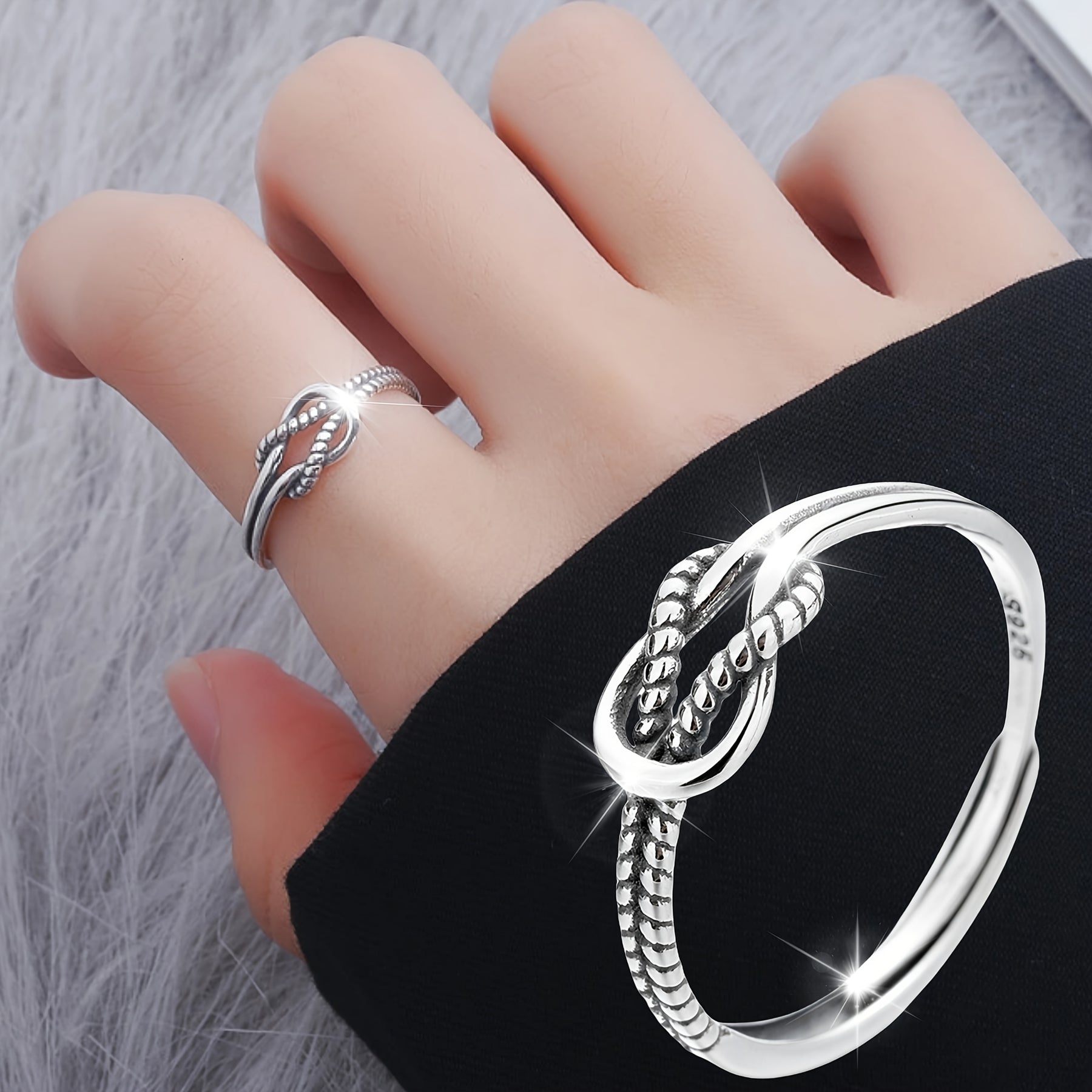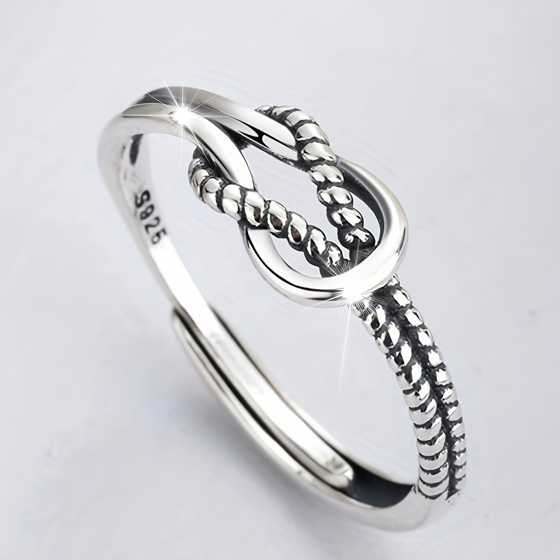 Add a touch of vintage flair to your look with this stunning 925 sterling silver open ring featuring a rope knotted design. Perfect for those who love hip hop and punk style jewelry.