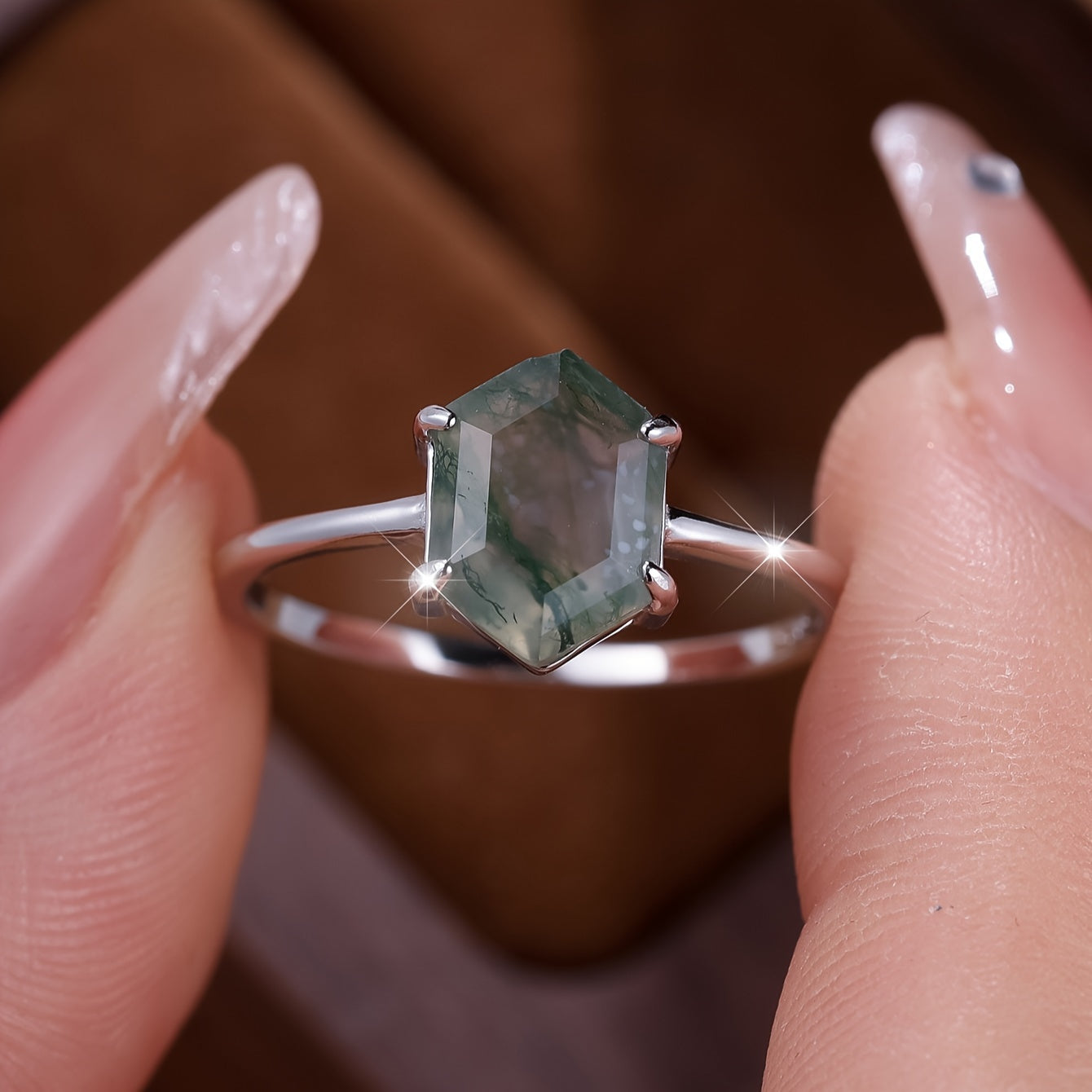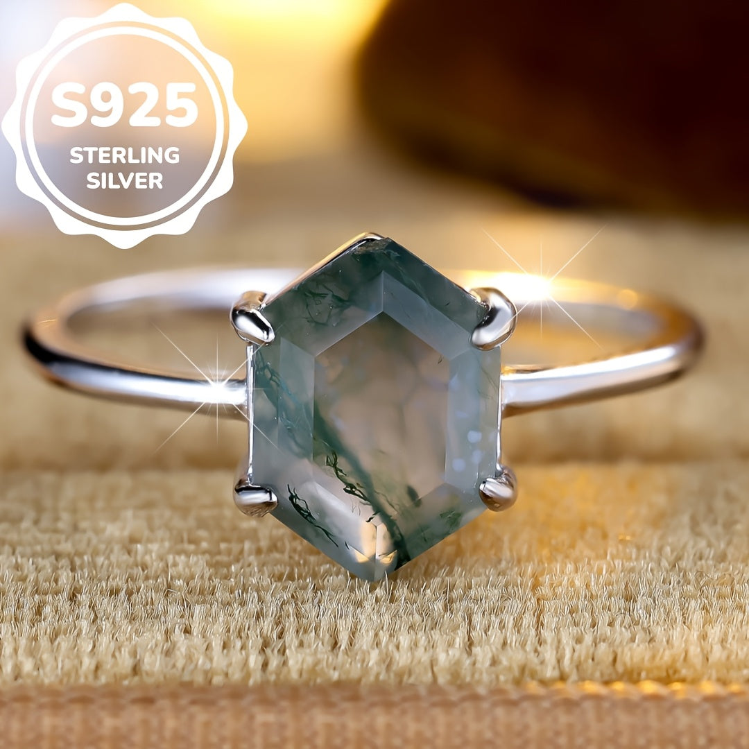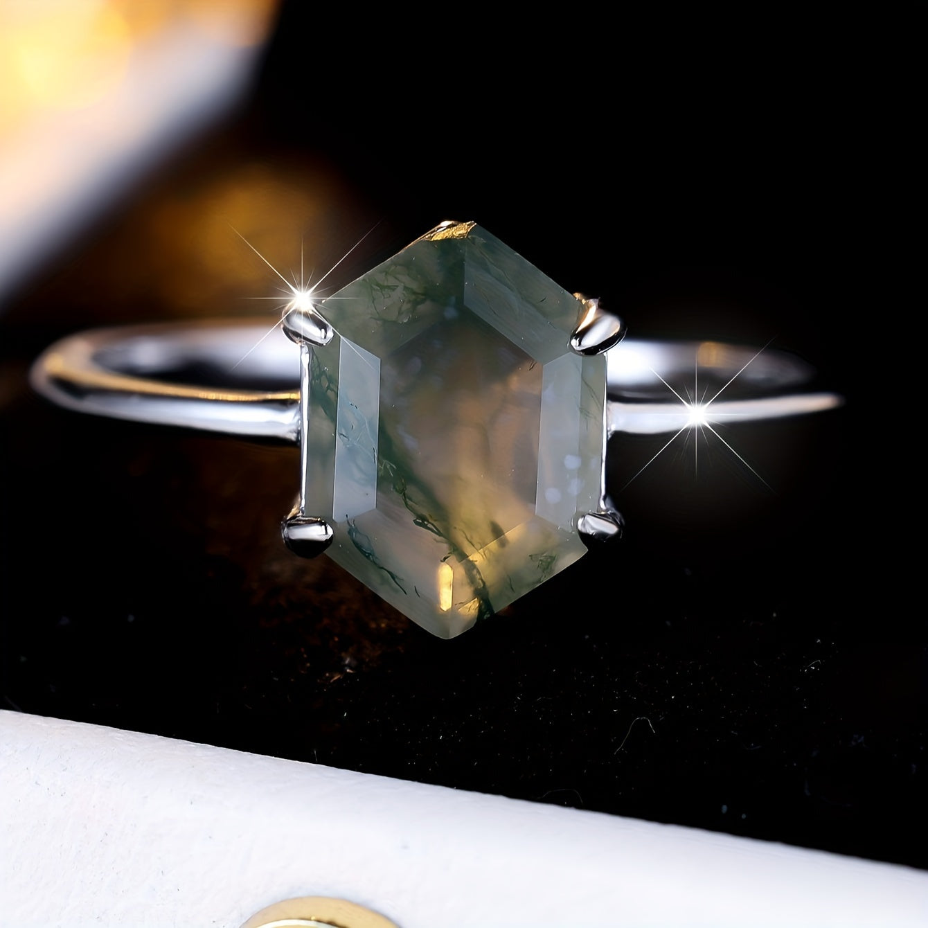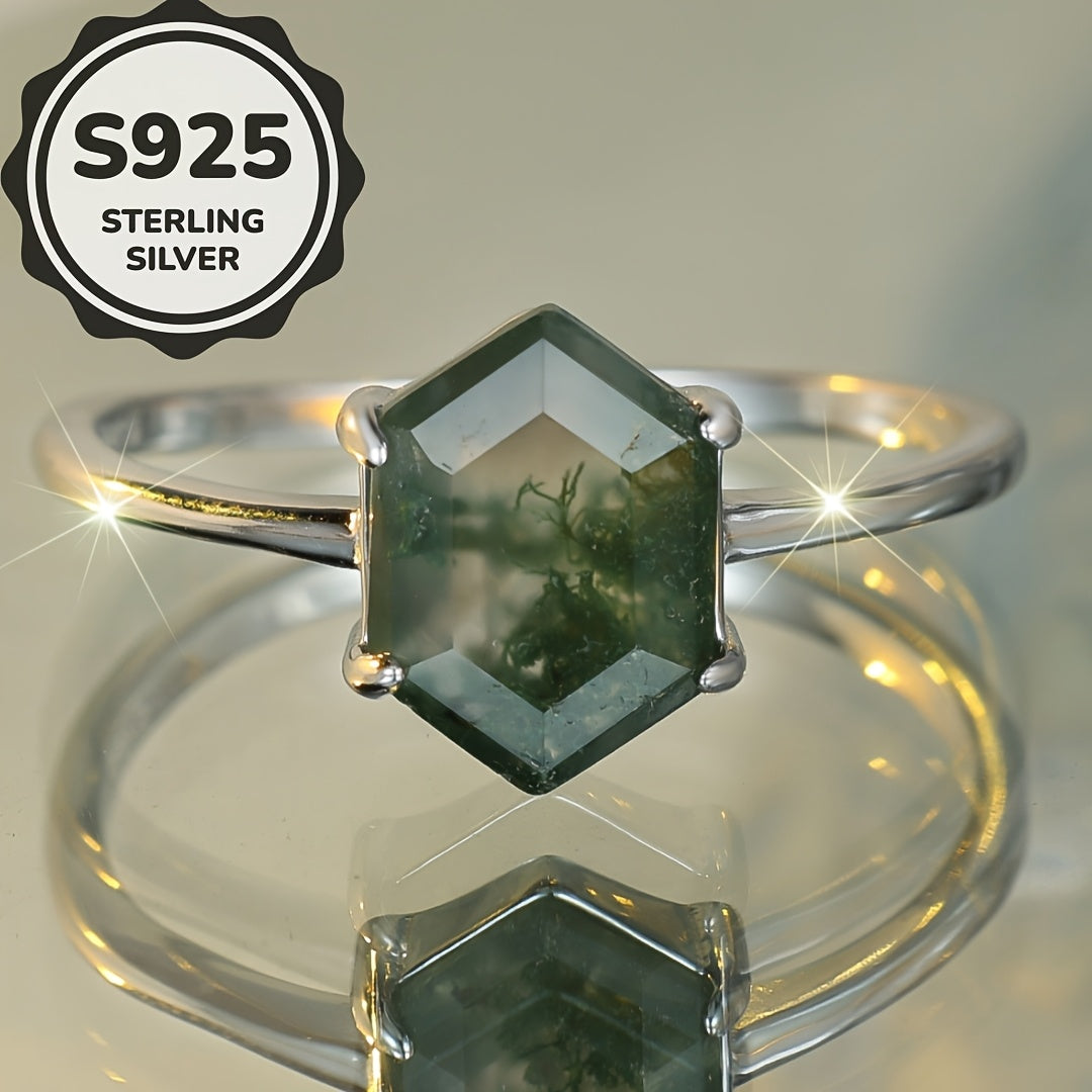 Elegant and stylish ring made of 925 sterling silver featuring a rhombus design with aquatic grass agate stone, perfect for daily wear or parties. Ideal gift idea for women. Weighs 2.5g.