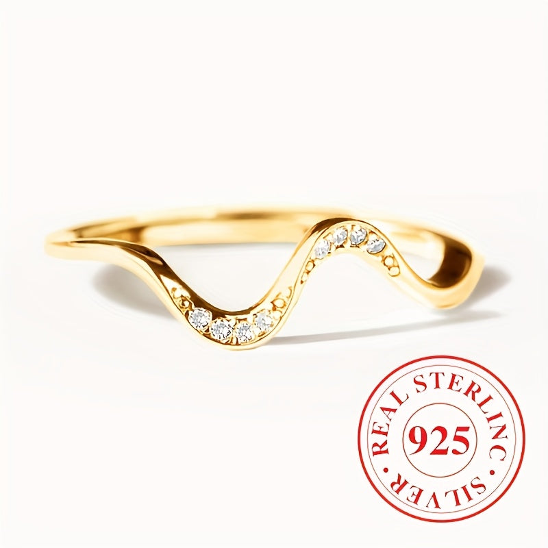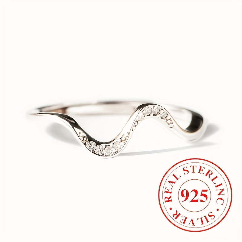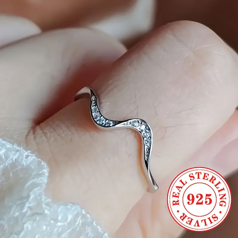 Elegant wave ring crafted from 925 sterling silver with synthetic cubic zirconia, perfect for daily wear and as an all-season accessory.