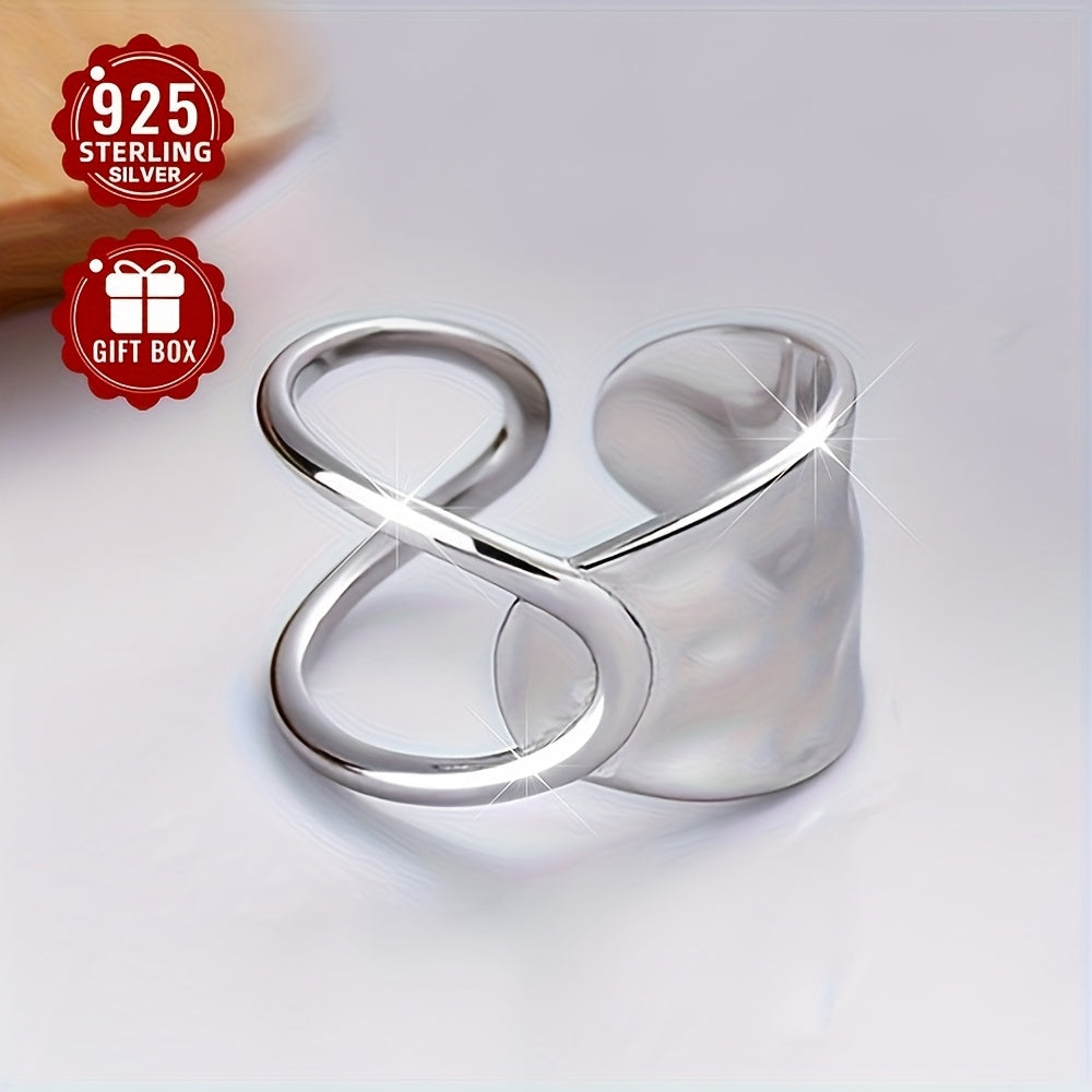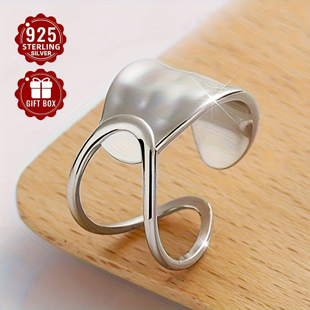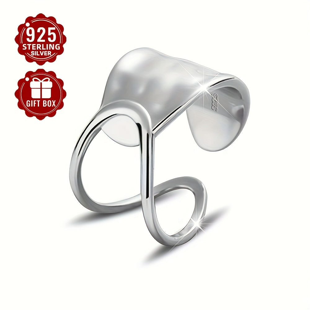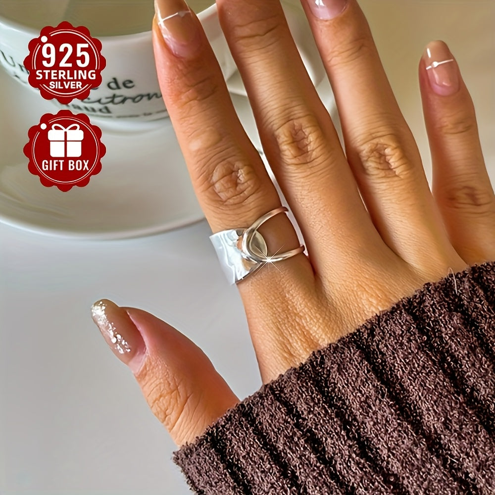 This women's personality ring features a retro style with a wide face design in 925 sterling silver. The ring is adjustable for a comfortable fit and suits various outfits.
