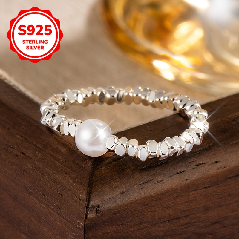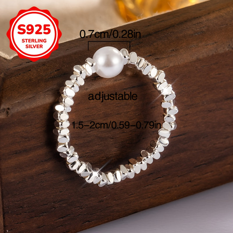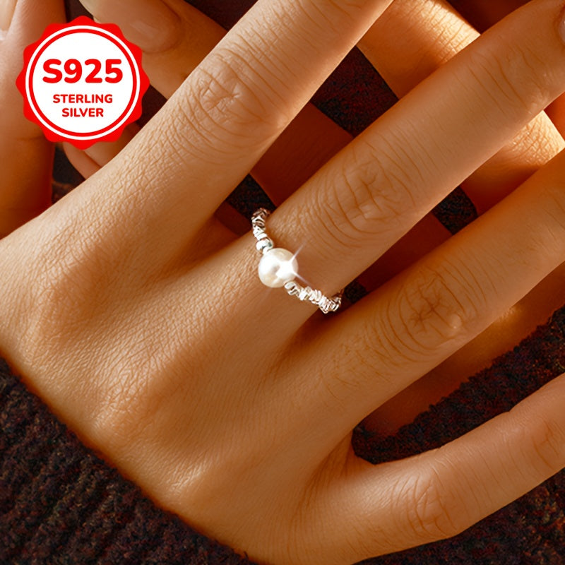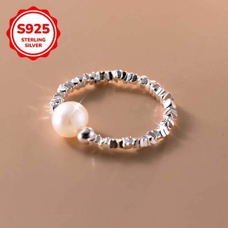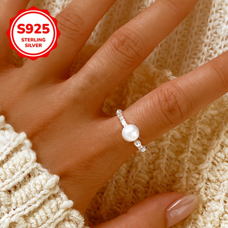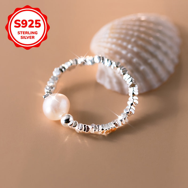 This S925 sterling silver ring features a minimalist design with a freshwater pearl, perfect for daily wear or special occasions.