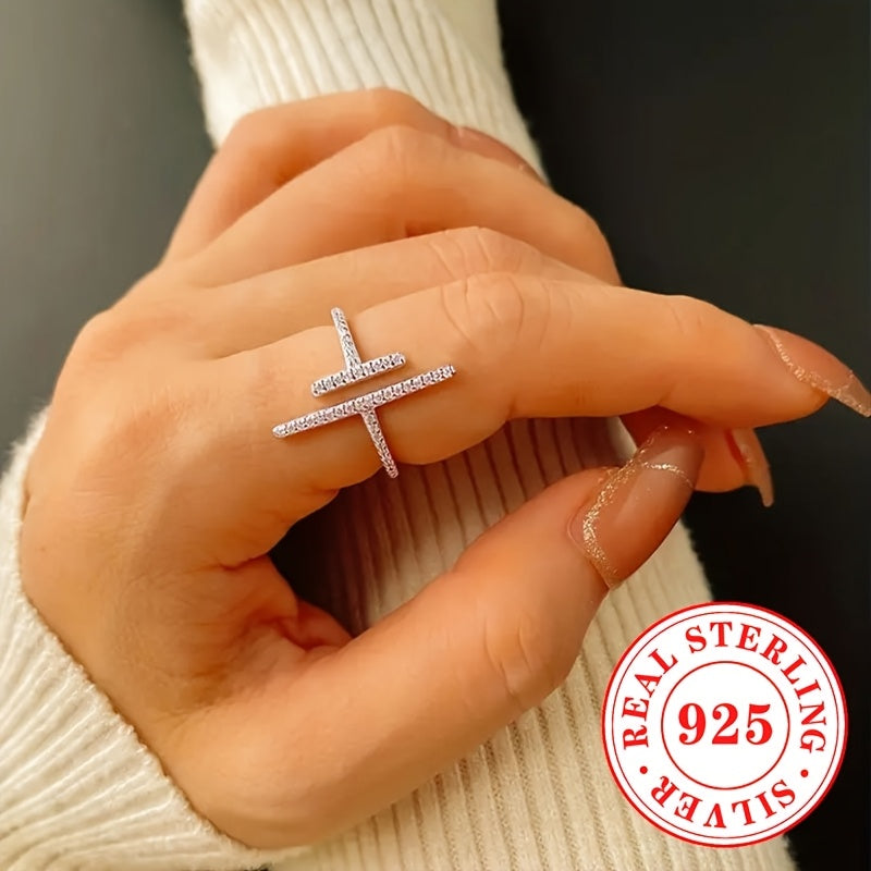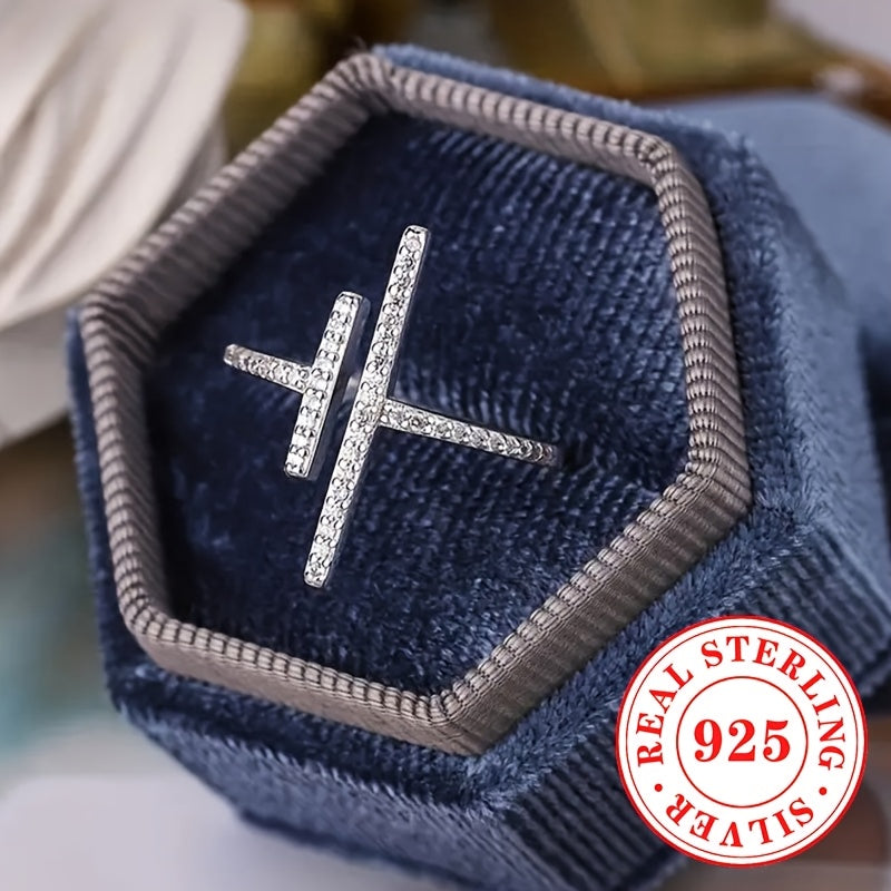 Elevate your casual attire with this stylish open ring featuring synthetic zirconia set in S925 sterling silver. Perfect for everyday wear.