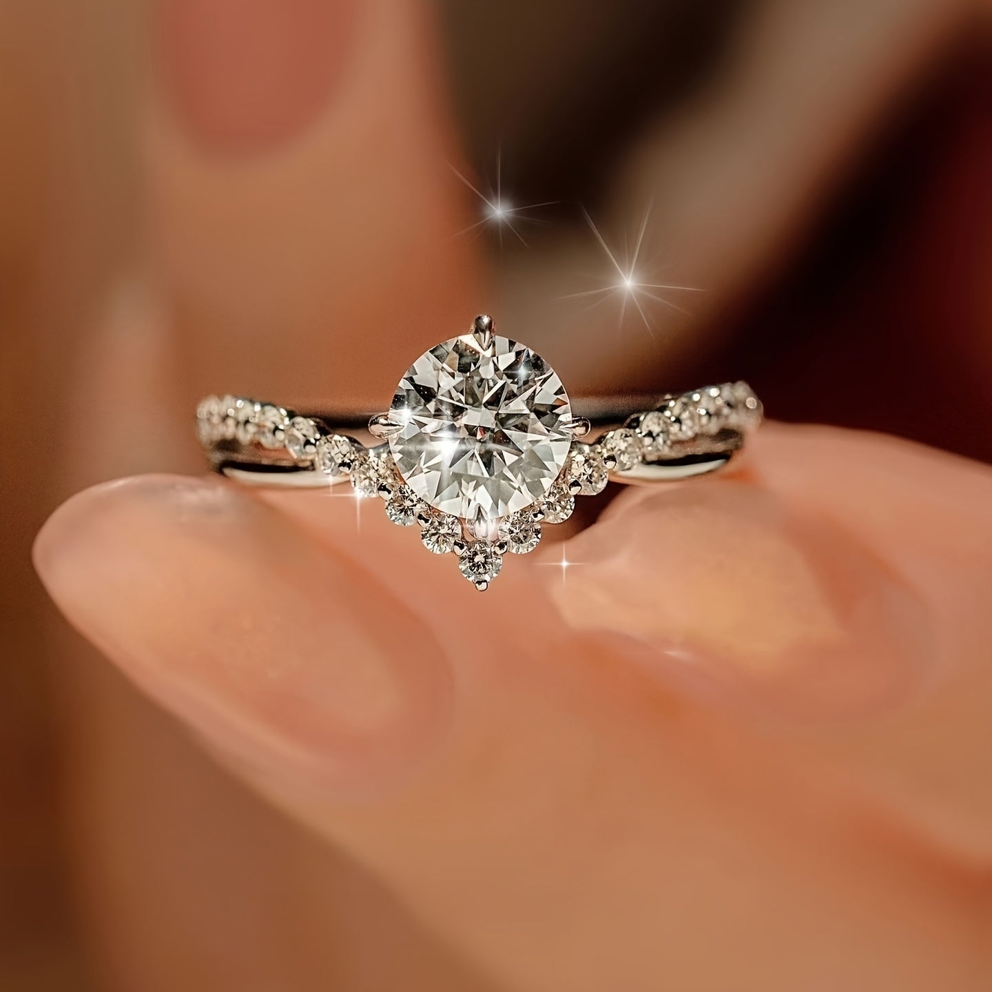 • Rose gold setting with clear gemstones