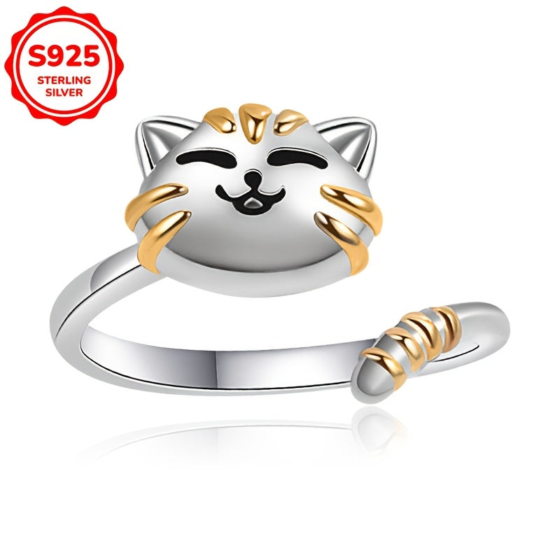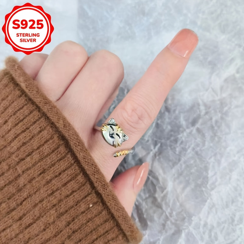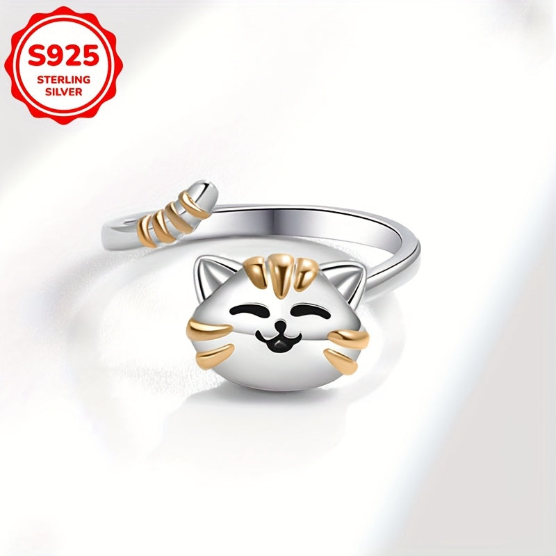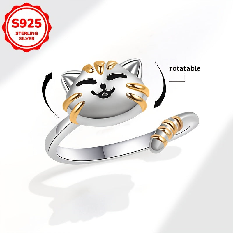This charming S925 silvery cat rotatable ring is a perfect accessory for daily wear or special occasions. Ideal for friends and girlfriends, this ring adds a touch of whimsy to any outfit.