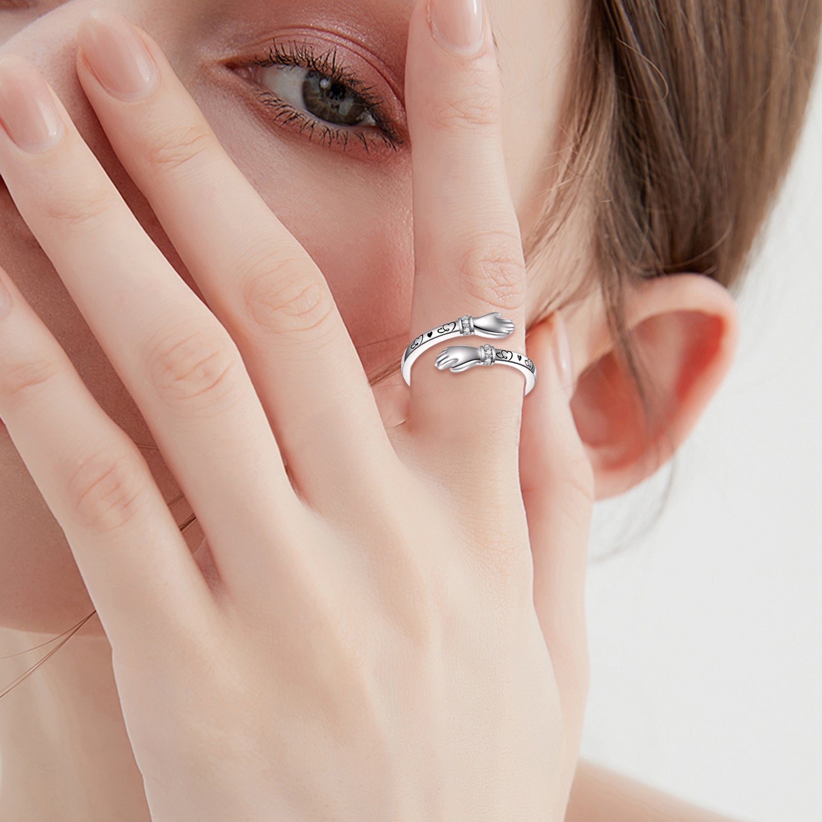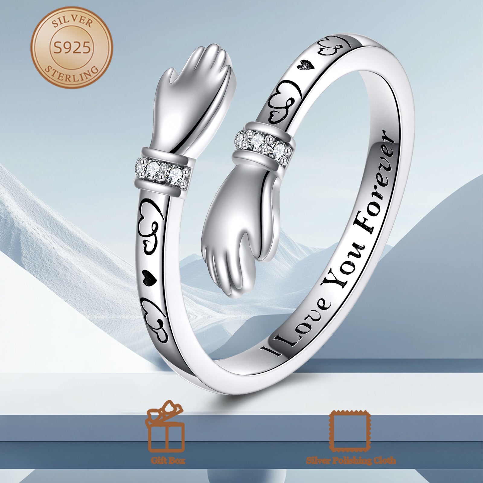 This adjustable ring is made of high-quality S925 sterling silver, perfect for women, mom, sister, wife, friends, and grandma. Show your love and appreciation with this beautiful hug ring.