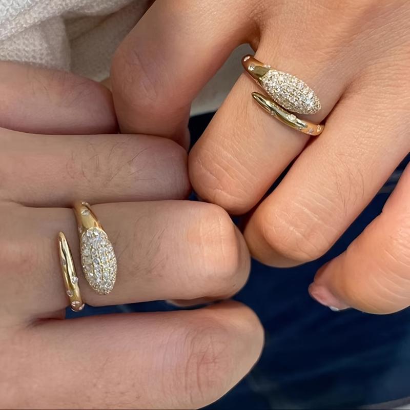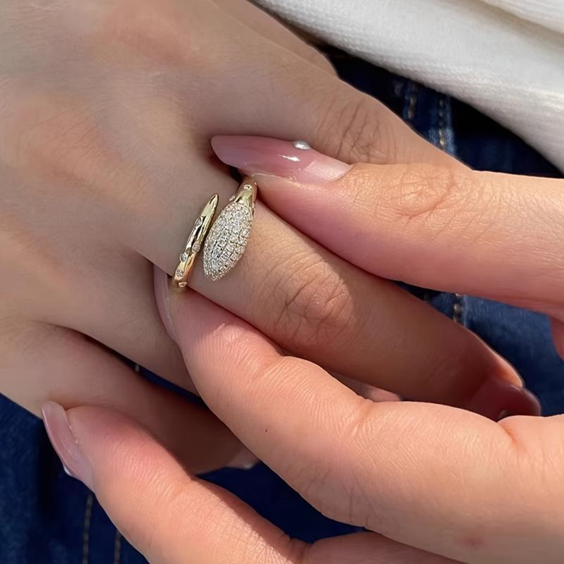 Animal Theme Cuff Ring with April Birthstone Rhinestones